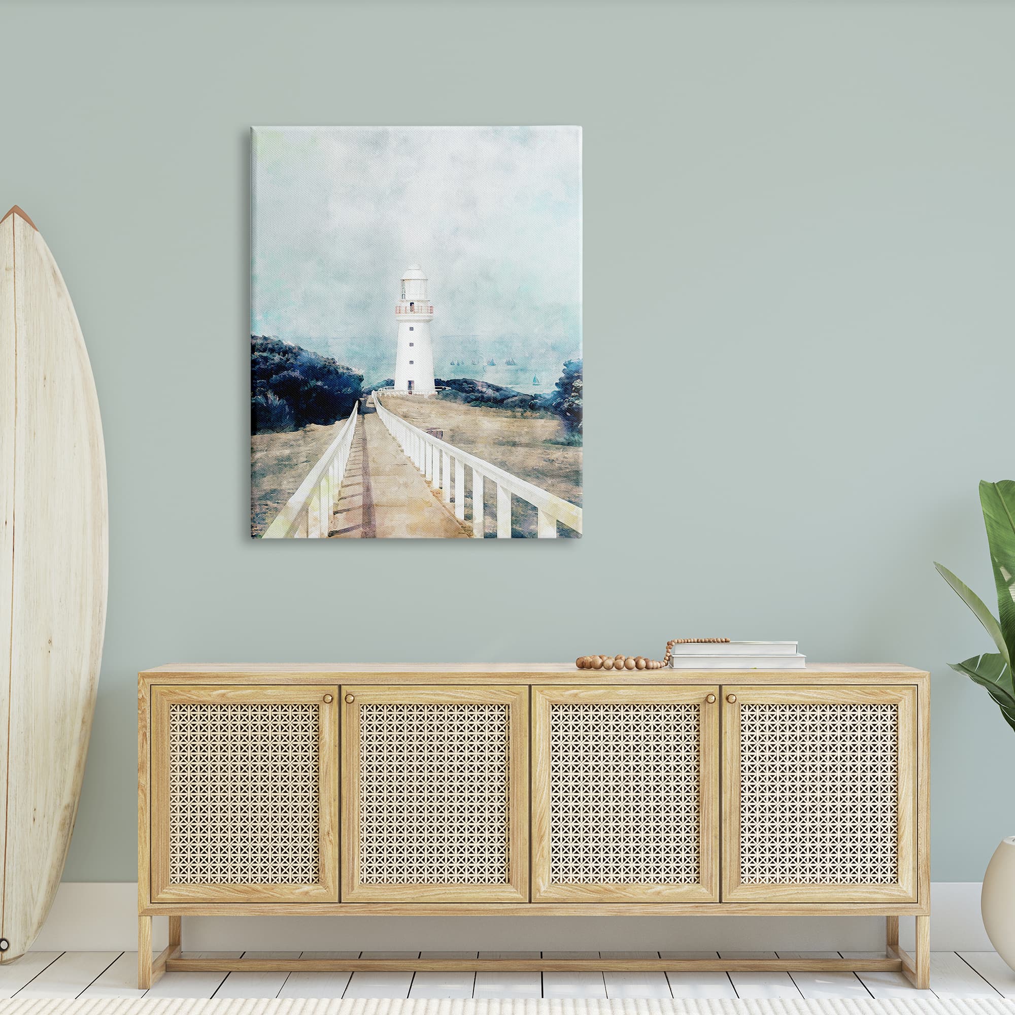 Stupell Industries White Lighthouse Boardwalk Rocky Cliff Coastal Landscape Water Canvas Wall Art