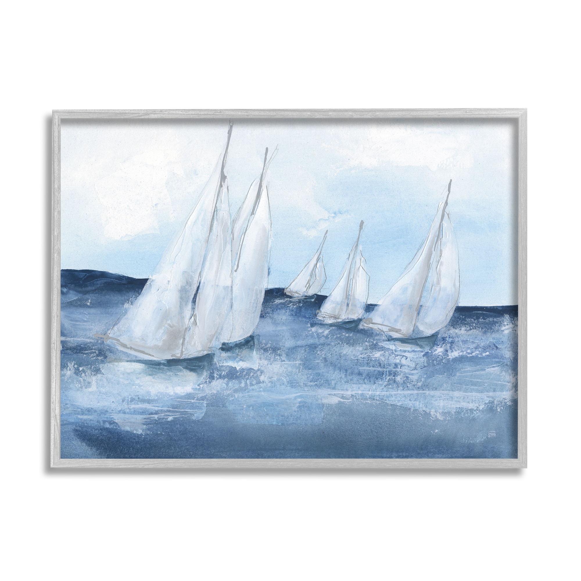 Stupell Industries White Sailboats Coasting Ocean Waters Blue Tide Framed Wall Art