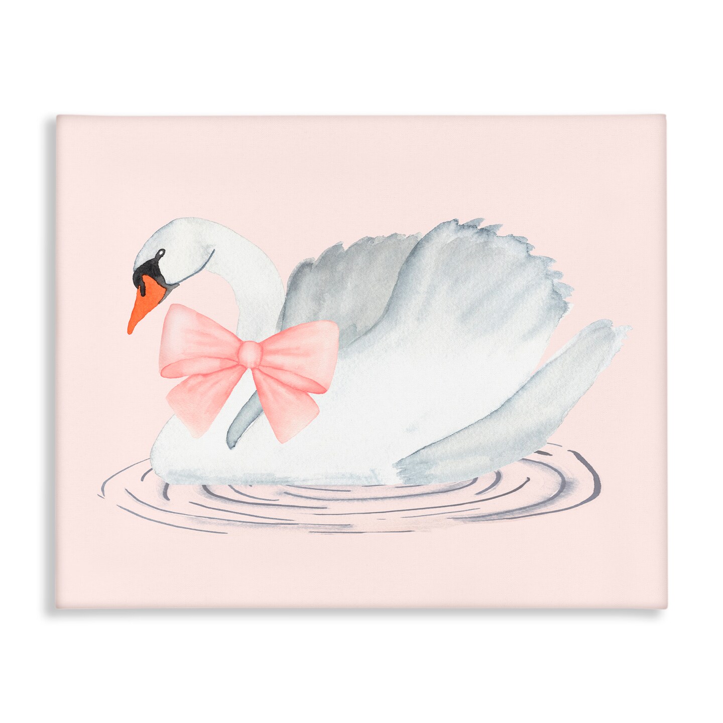 Stupell Industries White Swan with Pink Ribbon Canvas Wall Art, design by Nina Jacobs