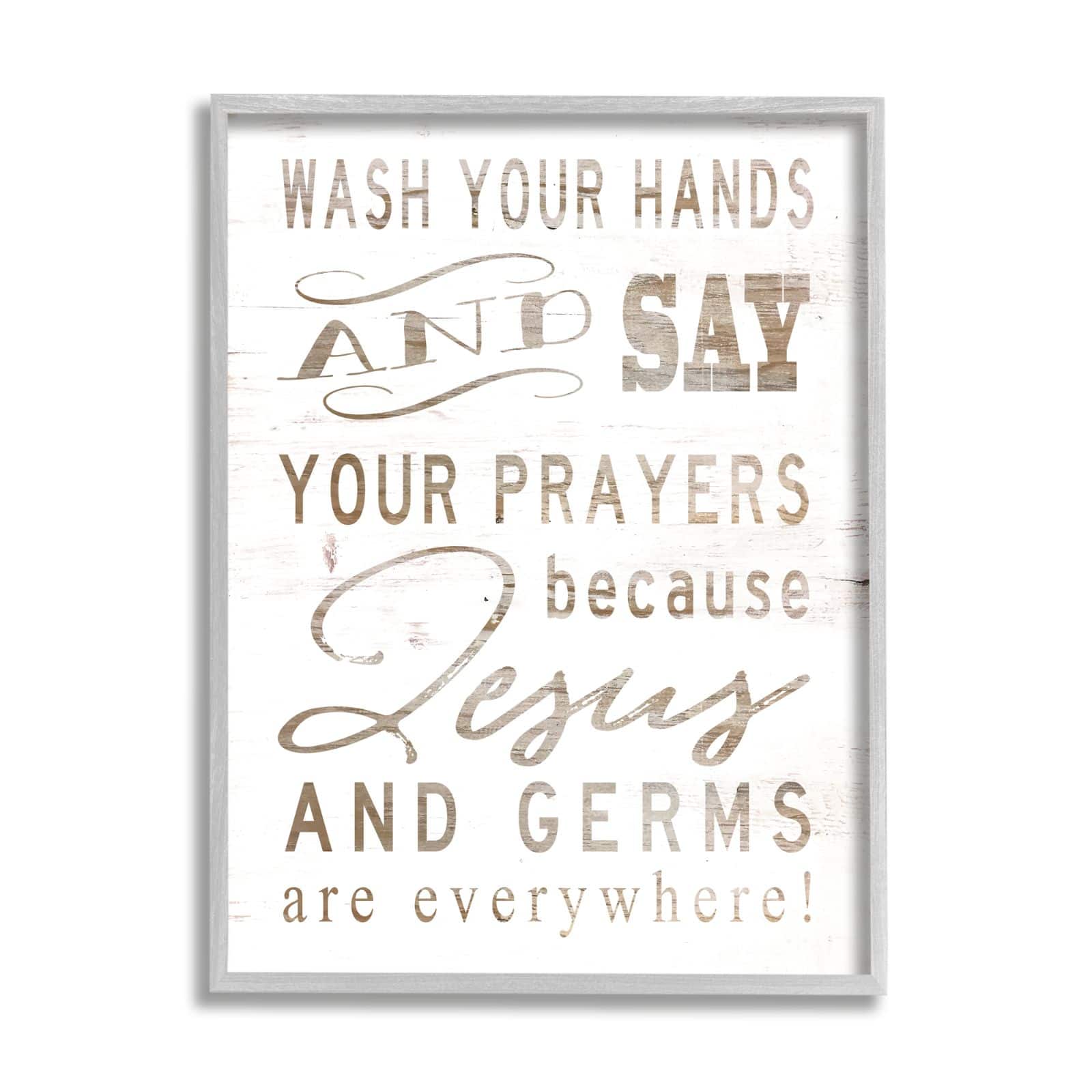 Stupell Industries White Wood Look Jesus And Germs Are Everywhere Wash Your Hands Sign Framed Wall Art