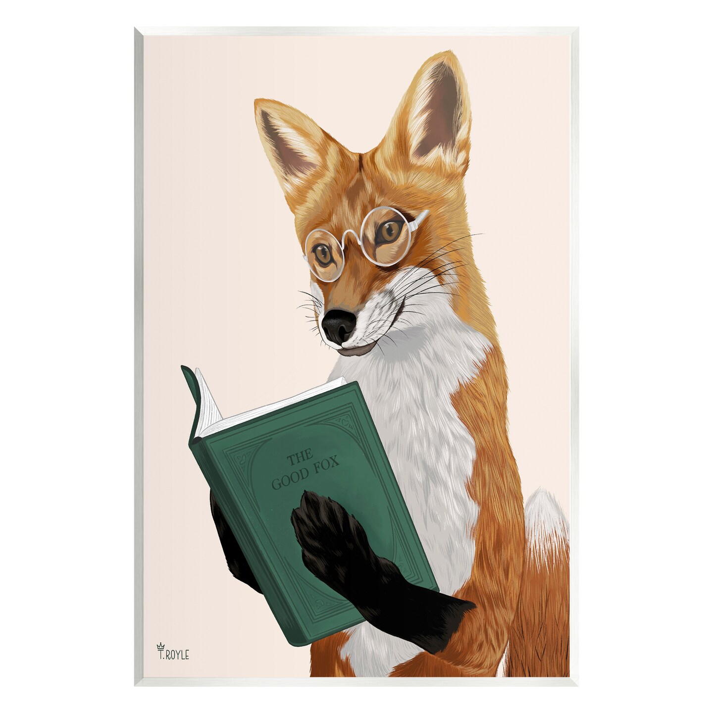 Stupell Industries Wild Fox Reading Book Wall Plaque Art