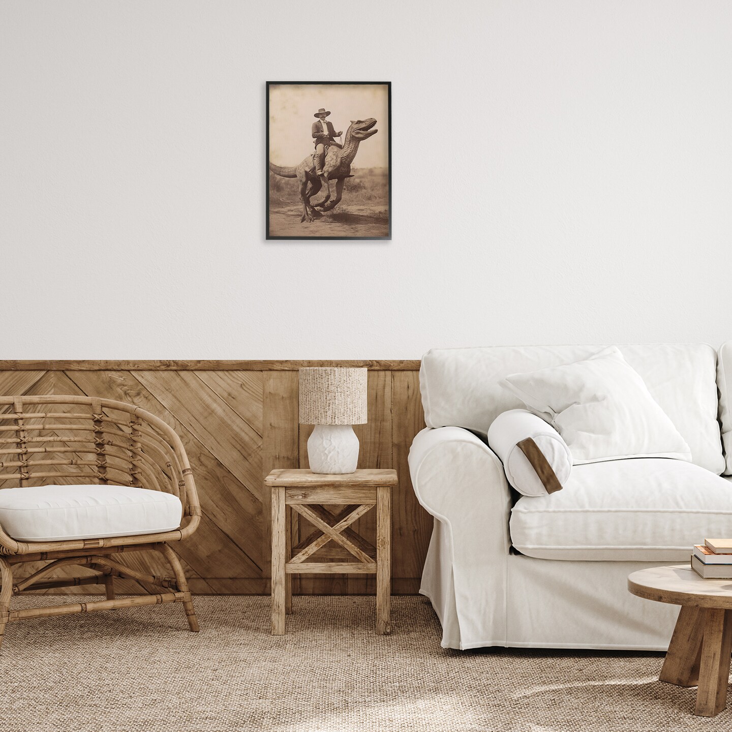 Stupell Industries Wild West Man Riding Dinosaur Framed Giclee By Lettered and Lined