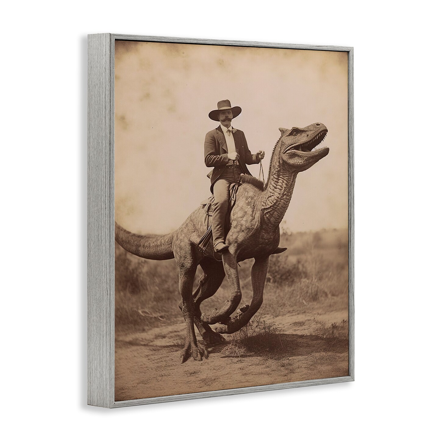 Stupell Industries Wild West Man Riding Dinosaur Framed Giclee By Lettered and Lined