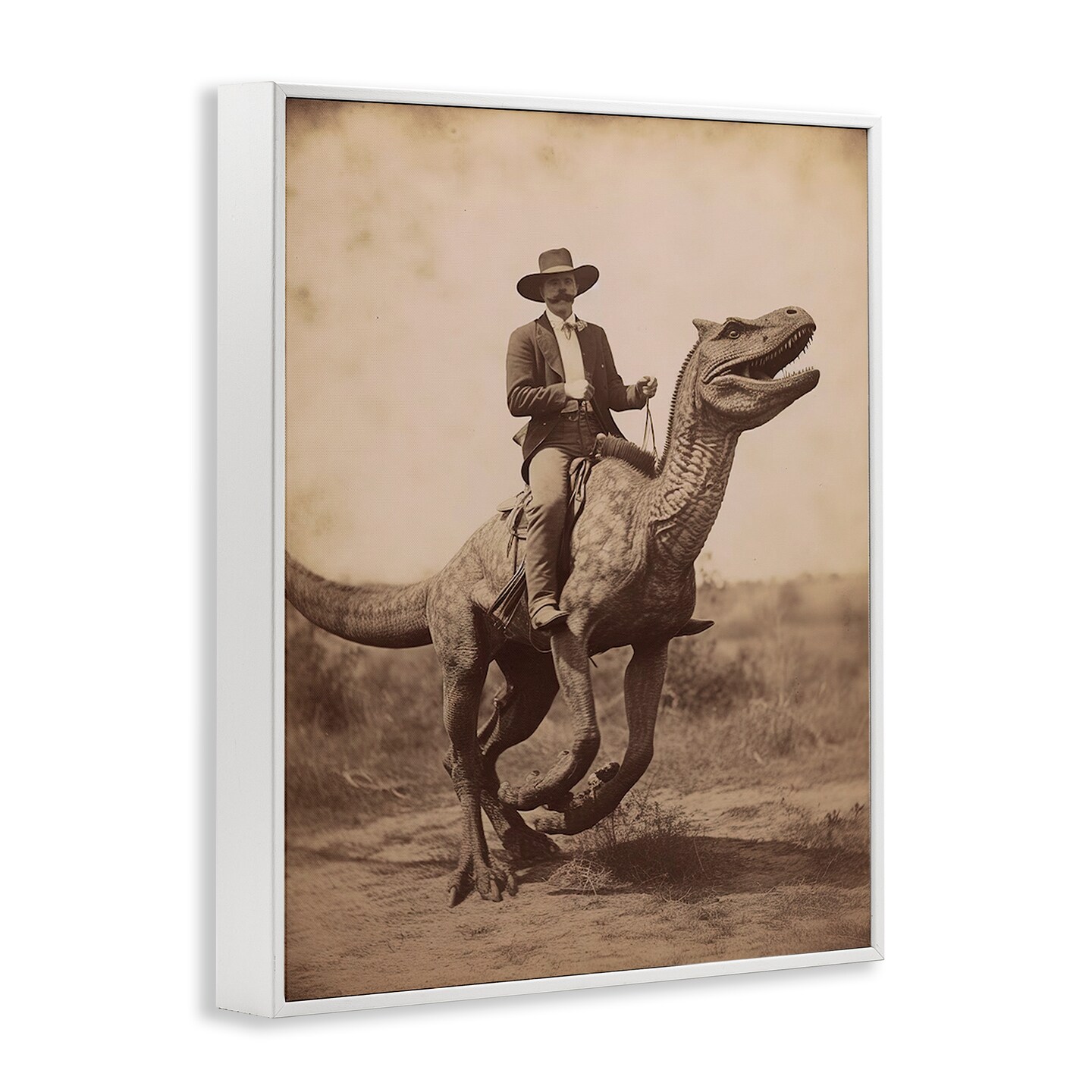 Stupell Industries Wild West Man Riding Dinosaur Framed Giclee By Lettered and Lined