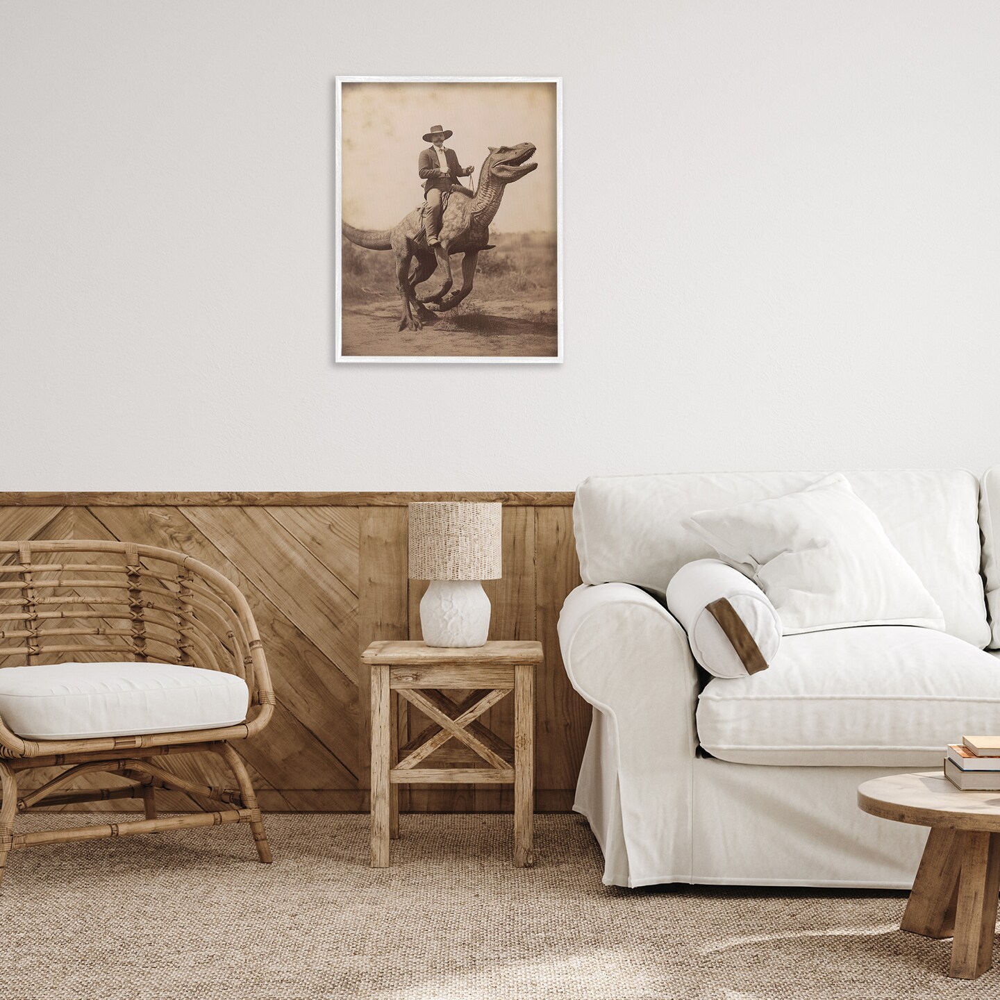 Stupell Industries Wild West Man Riding Dinosaur Framed Giclee By Lettered and Lined