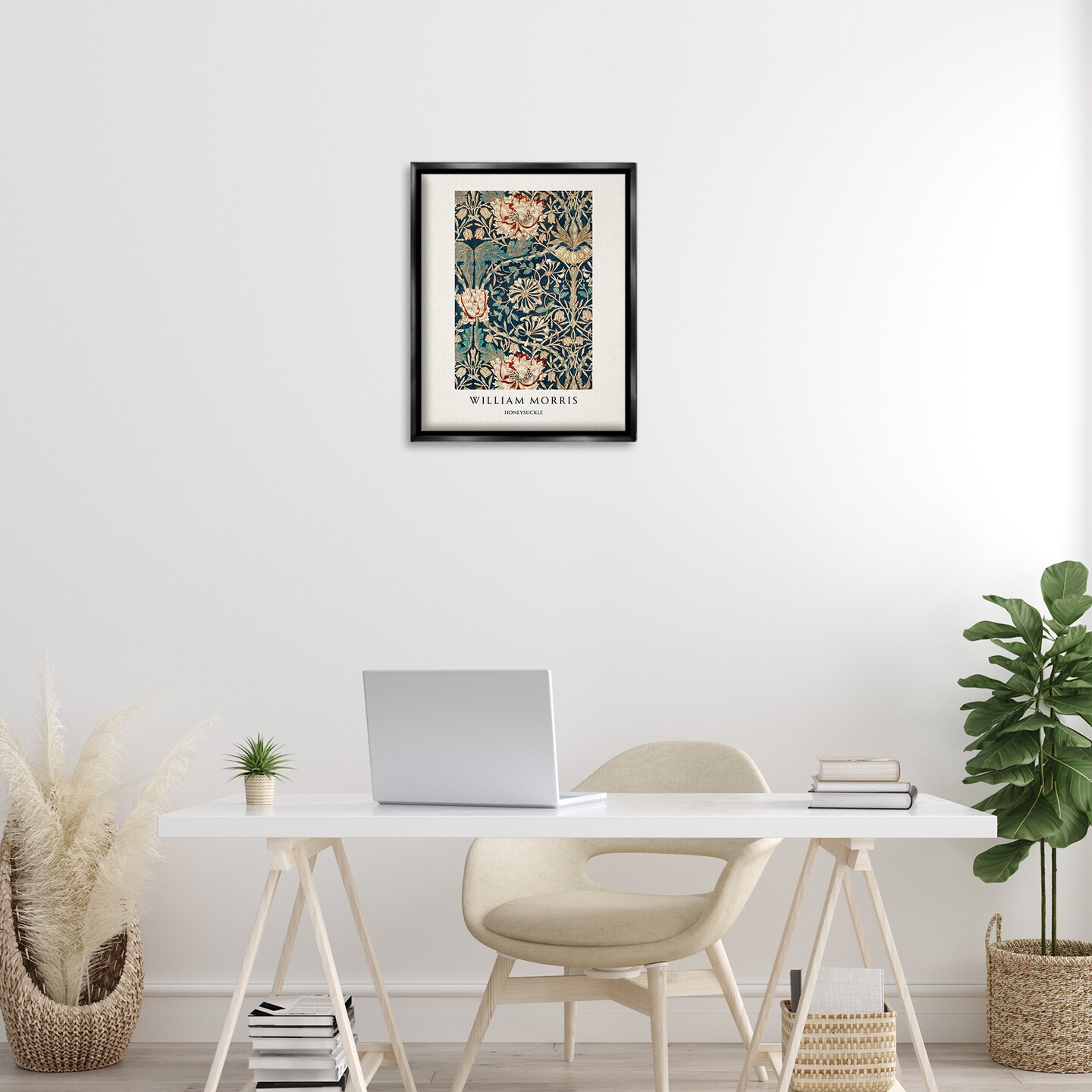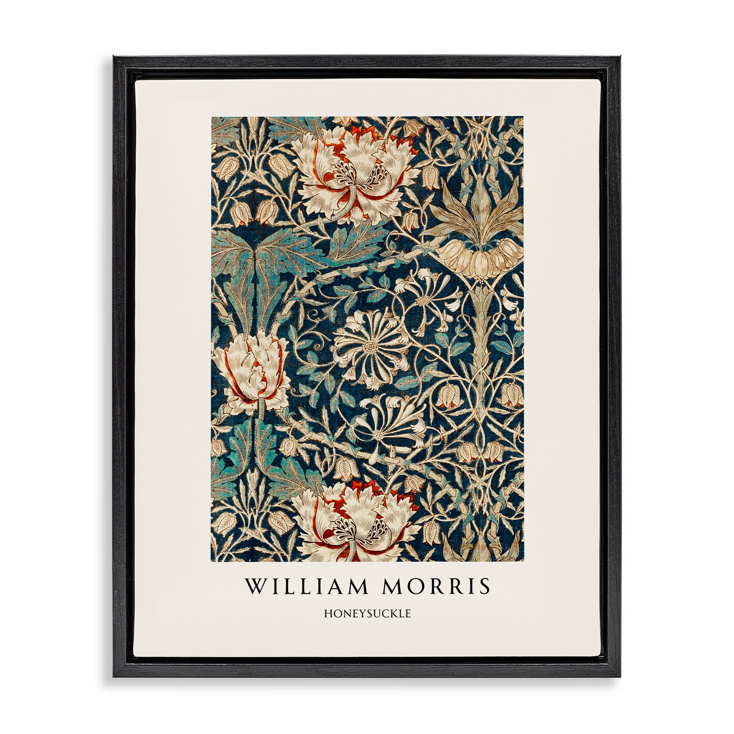 Stupell Industries William Morris Honeysuckle Pattern Black Framed Floater Canvas Wall Art, design by Vintage Hustle