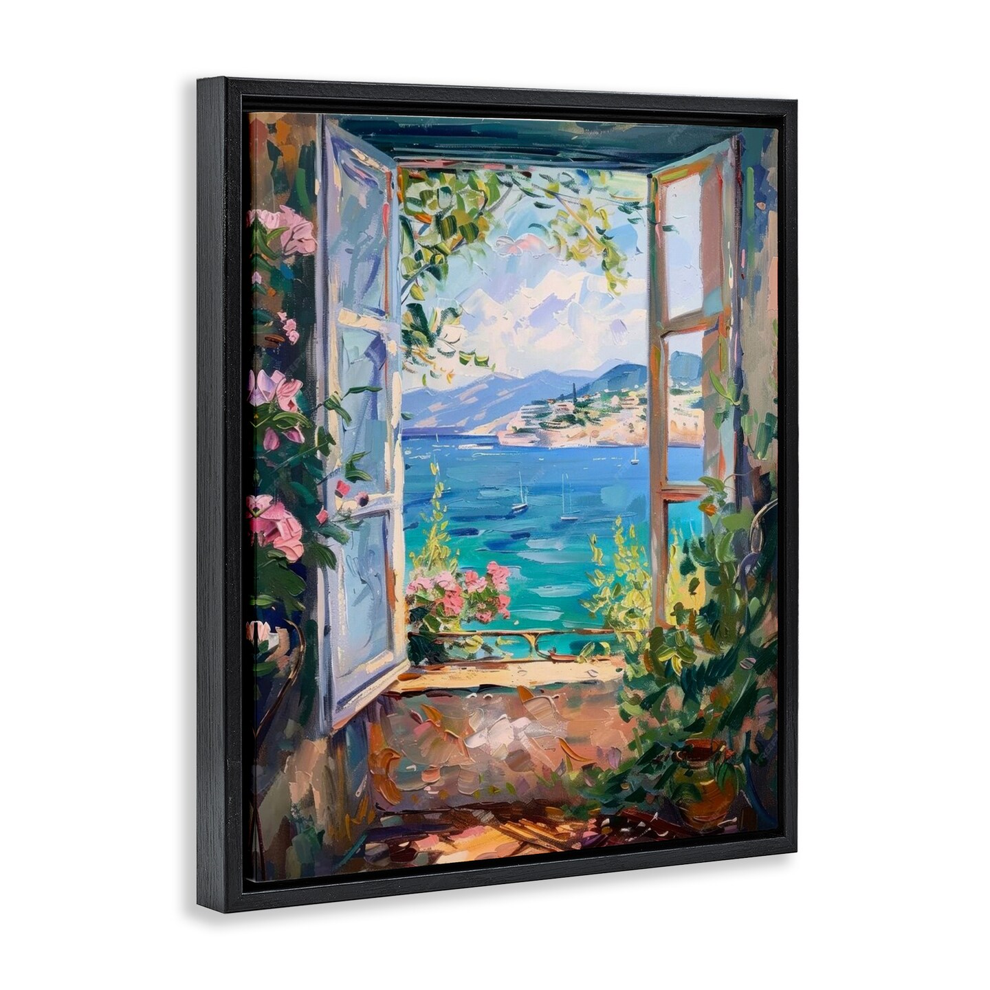 Stupell Industries Window Sea View Floater Framed Canvas Wall Art Design by LSR Design Studio