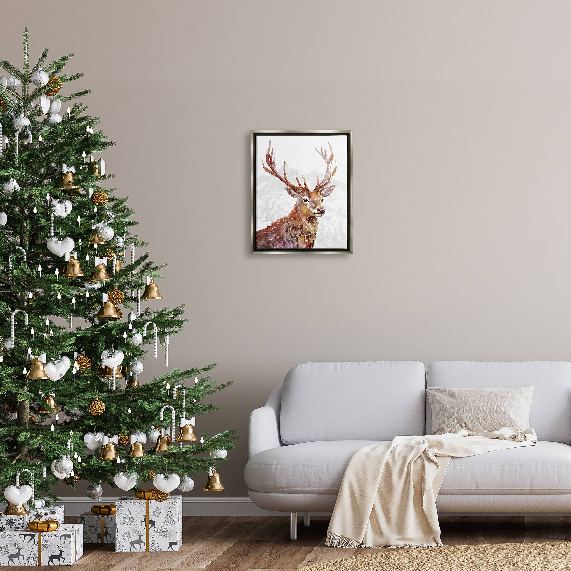 Stupell Industries Winter Deer Mountain Snowfall Framed Floater Canvas Wall Art