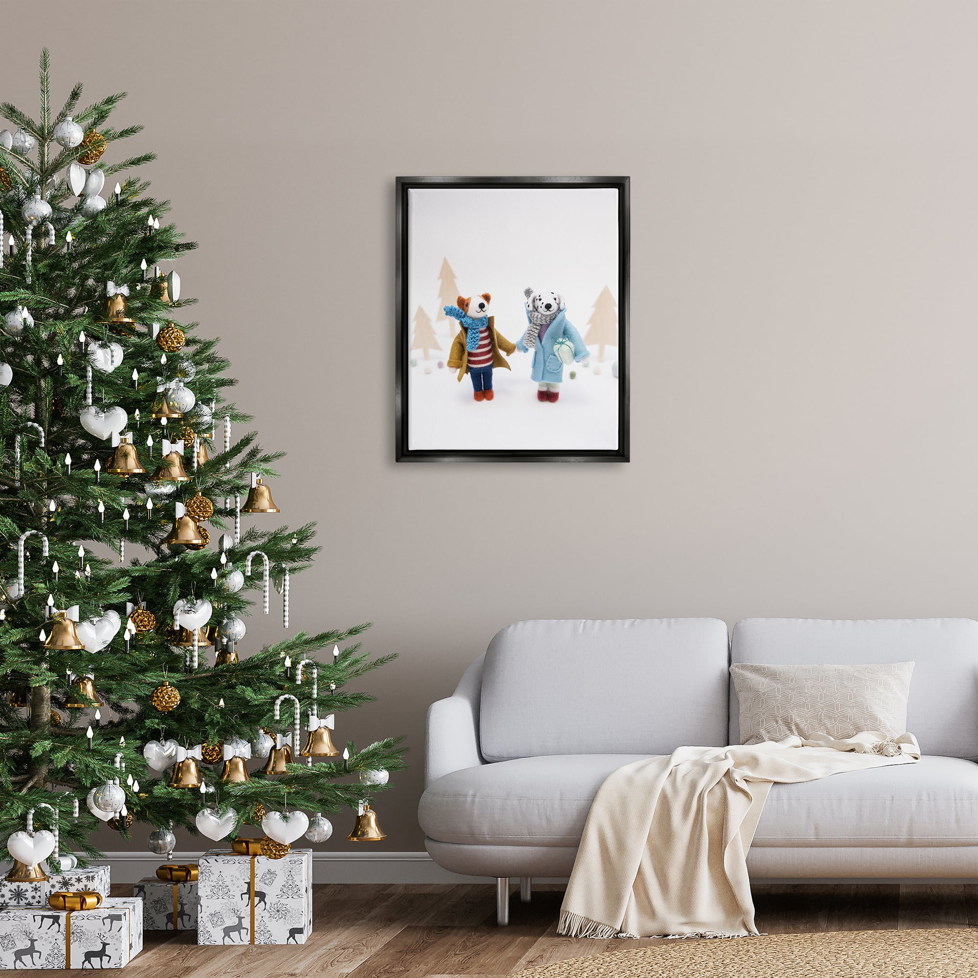 Stupell Industries Winter Holiday Gifts Dog Couple Framed Floater Canvas Wall Art
