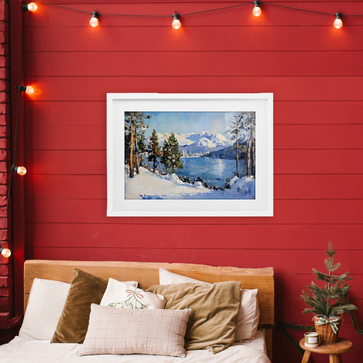 Stupell Industries Winter Mountain Lake Framed Print Under Glass, design by Petal Prints Design