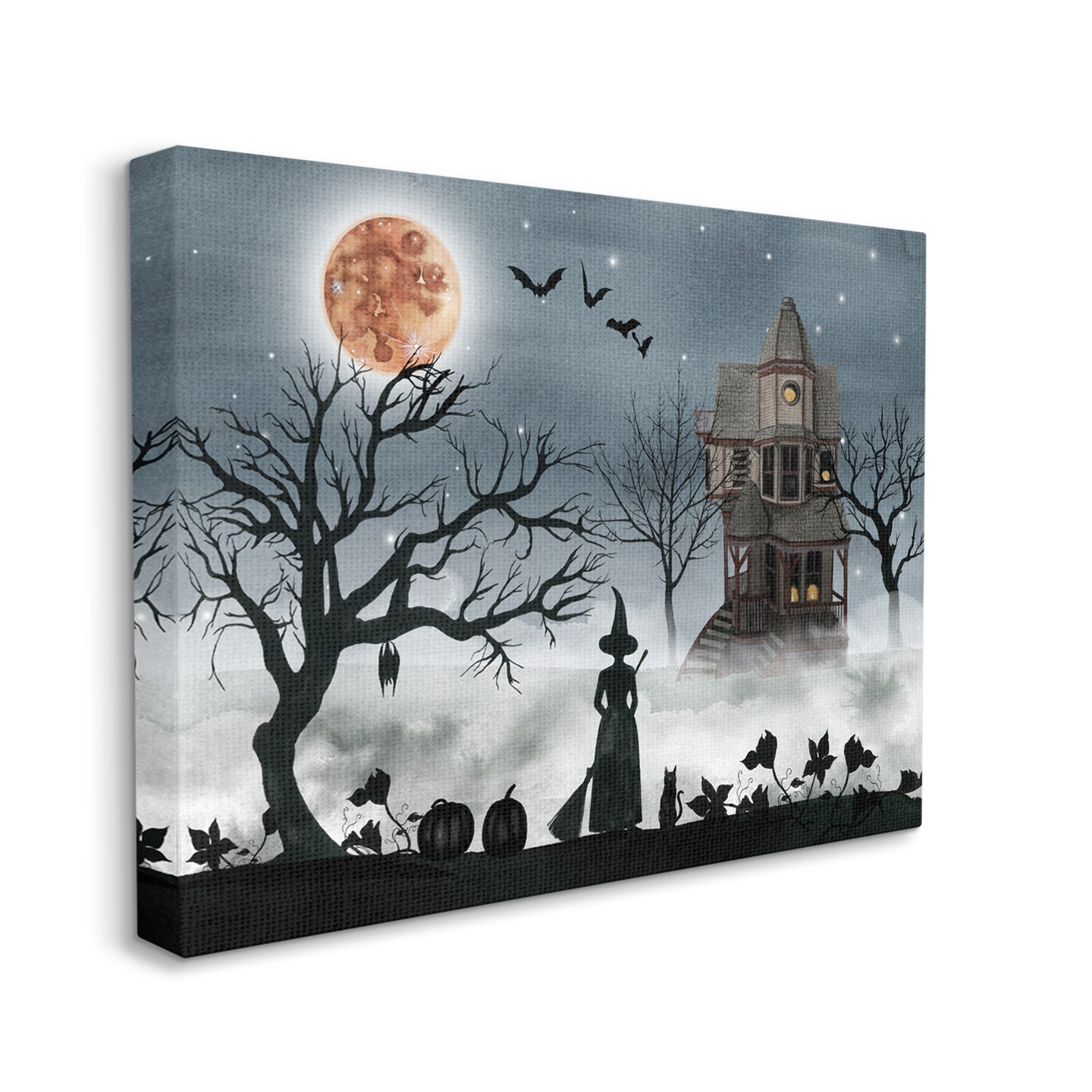 Stupell Industries Witch & Haunted House Scene Canvas Wall Art