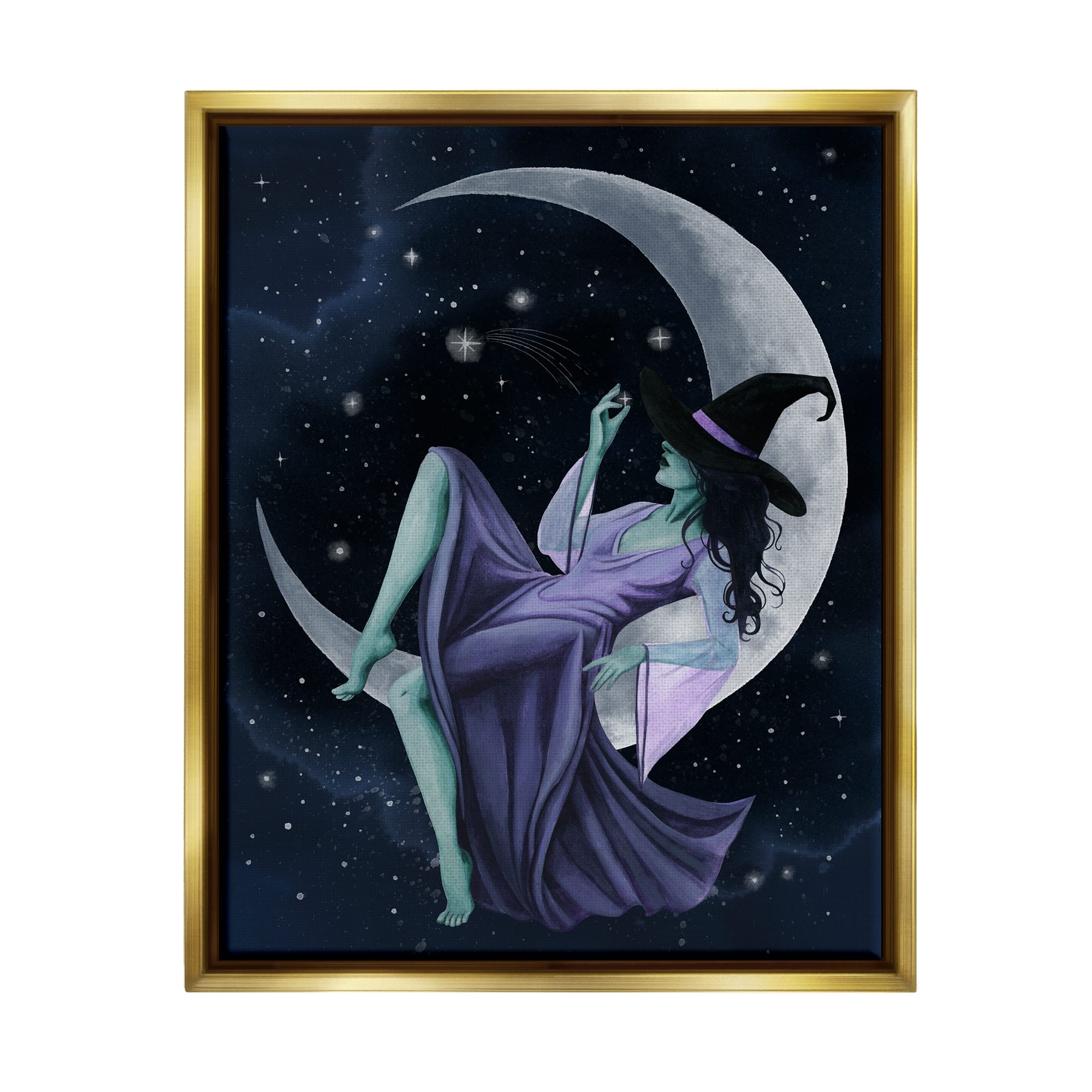 Stupell Industries Witch Relaxing Crescent Moon Framed Floater Canvas Wall Art
