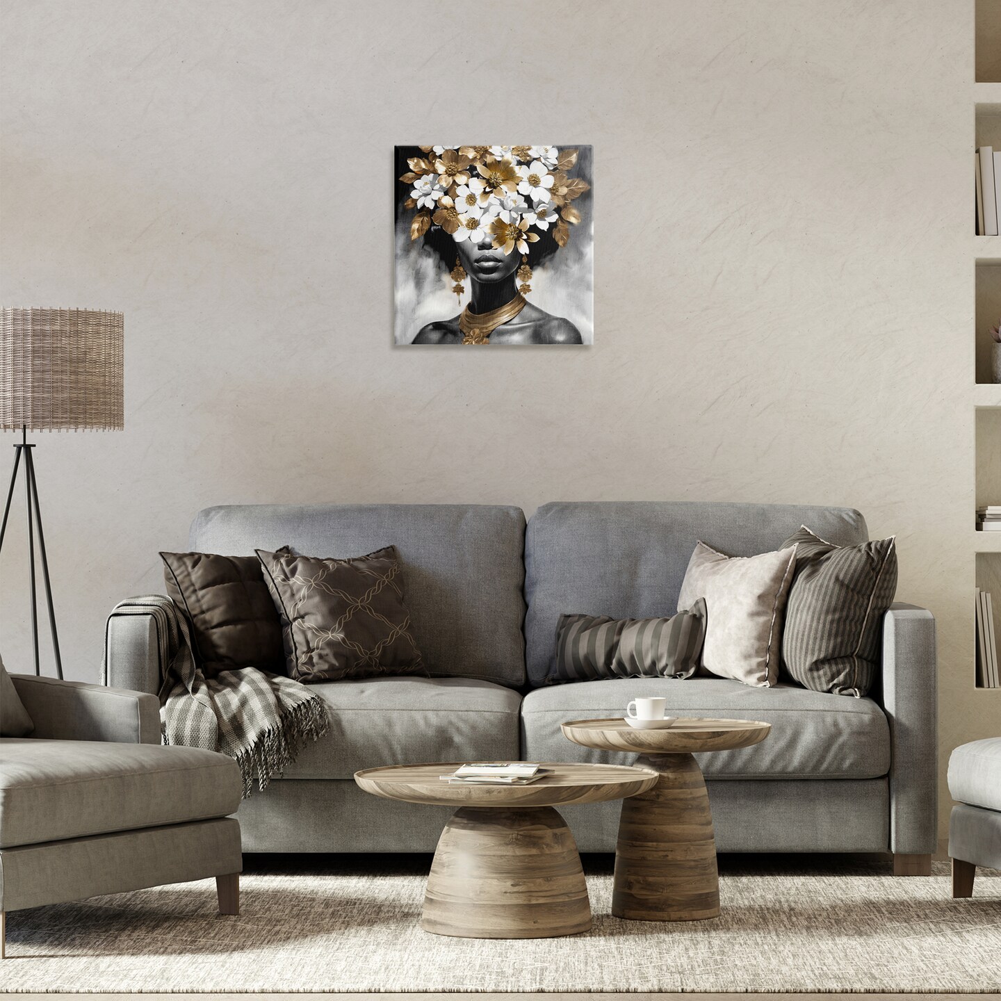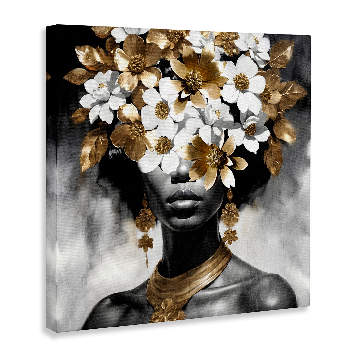 Stupell Industries Woman & Gold Flowers Canvas Wall Art Design by Kim Allen