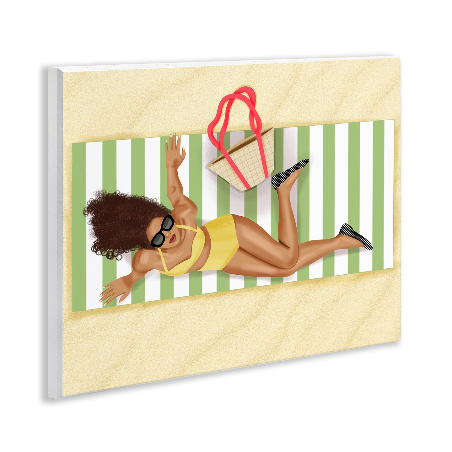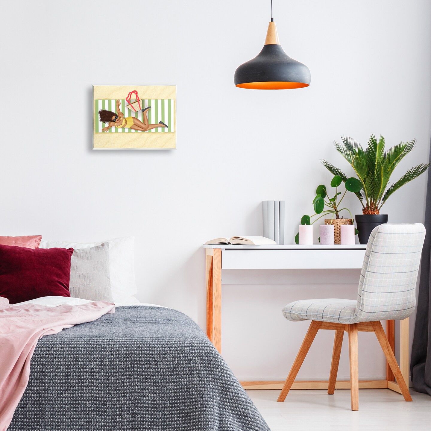 Stupell Industries Woman on Beach Blanket Wall Plaque Art Design by Saba Rauf