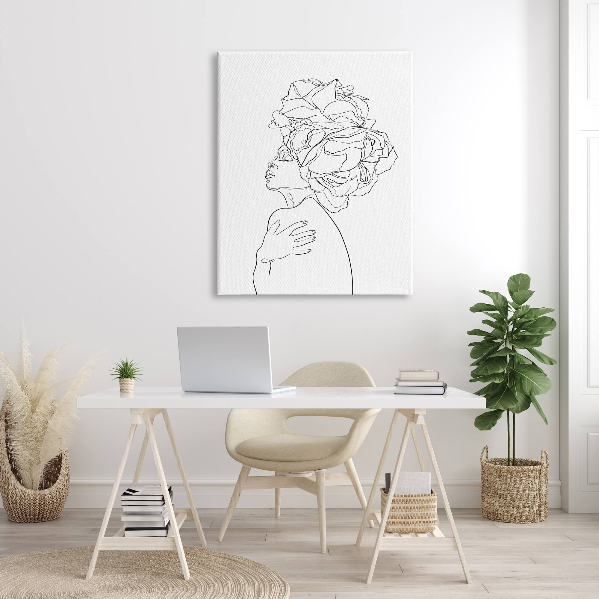 Stupell Industries Woman Slouching with Headwrap Minimalism Linework Canvas Wall Art