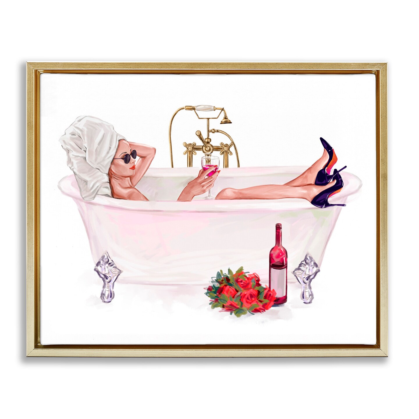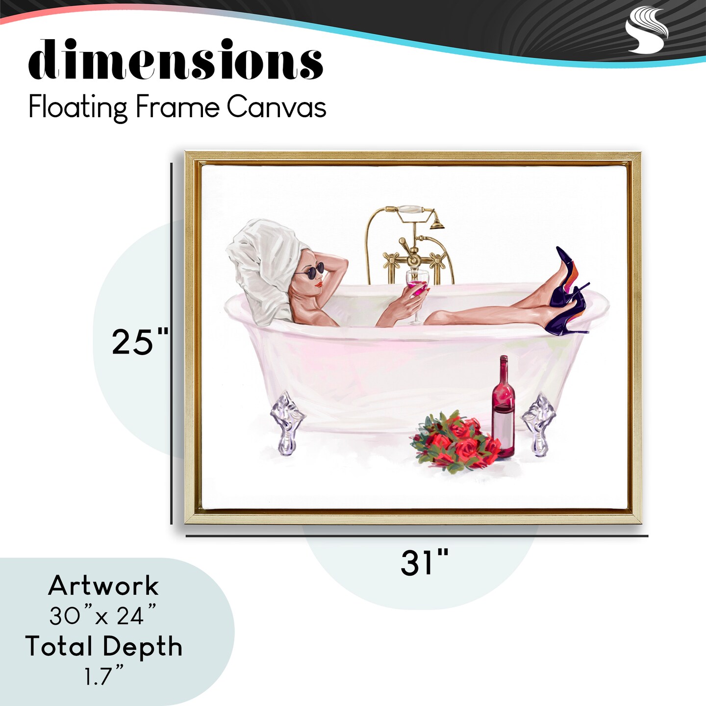 Stupell Industries Woman with Wine Bath Floating Frame, design by Ziwei Li