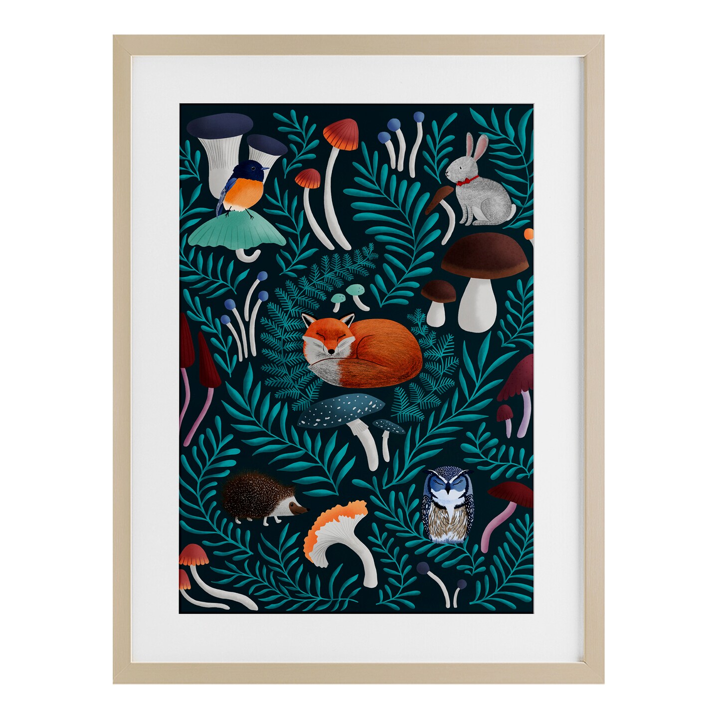 Stupell Industries Woodland Animals & Botanical Sprigs Framed Print Under Glass, design by Metka Hiti
