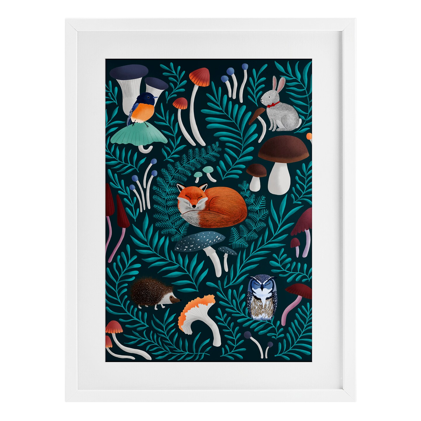 Stupell Industries Woodland Animals & Botanical Sprigs Framed Print Under Glass, design by Metka Hiti