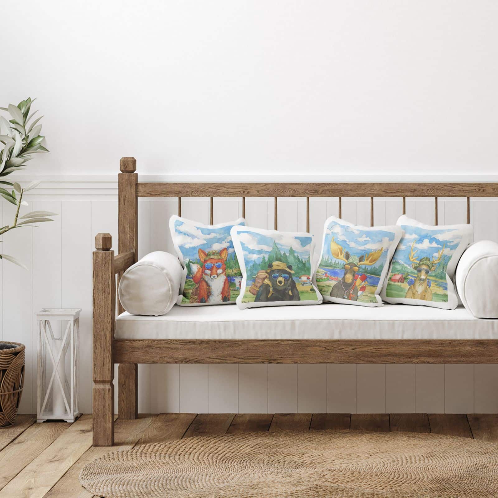 Stupell Industries Woodland Animals Camping Fishing Gear Nature Scene 4 Pillow Set, 18" x 18"
