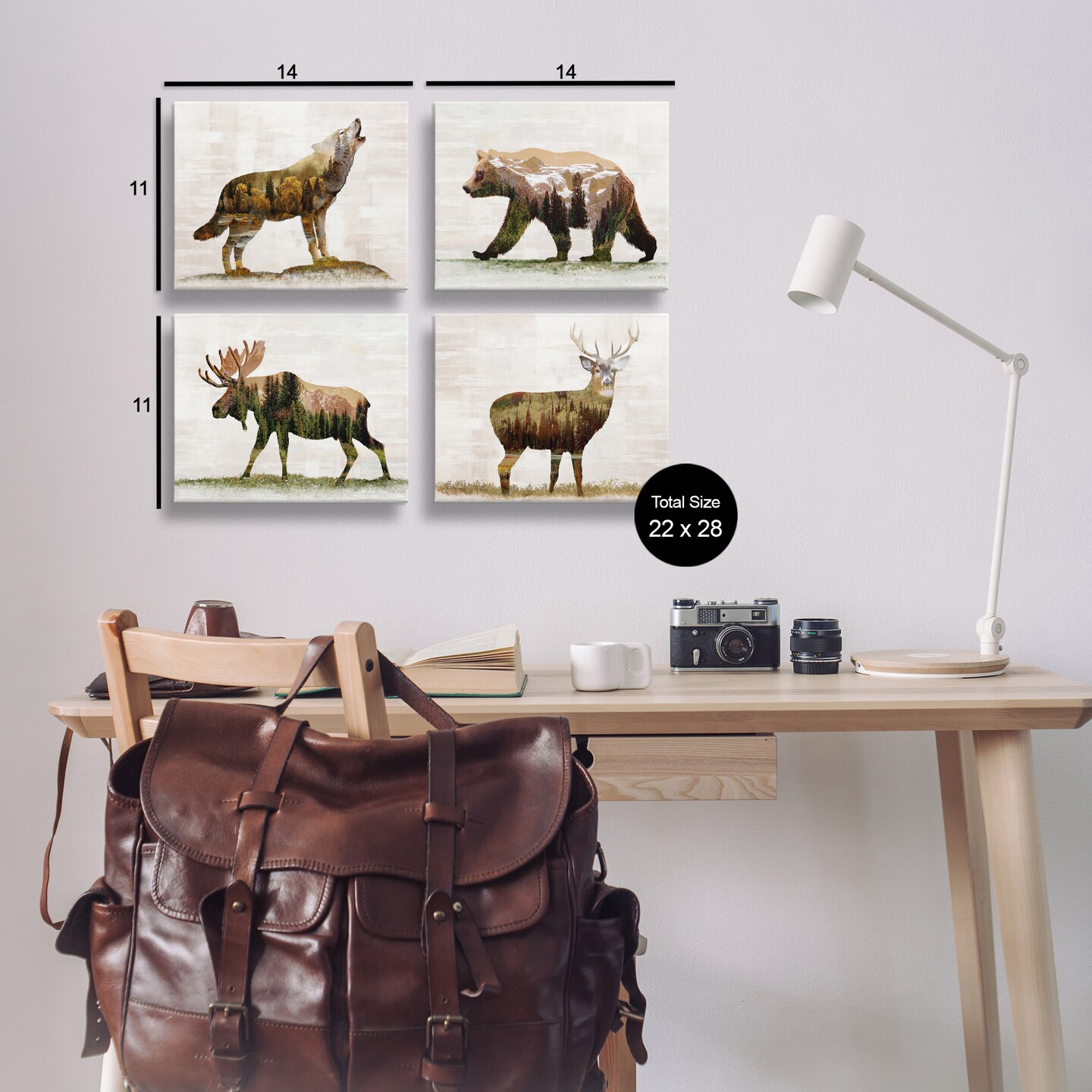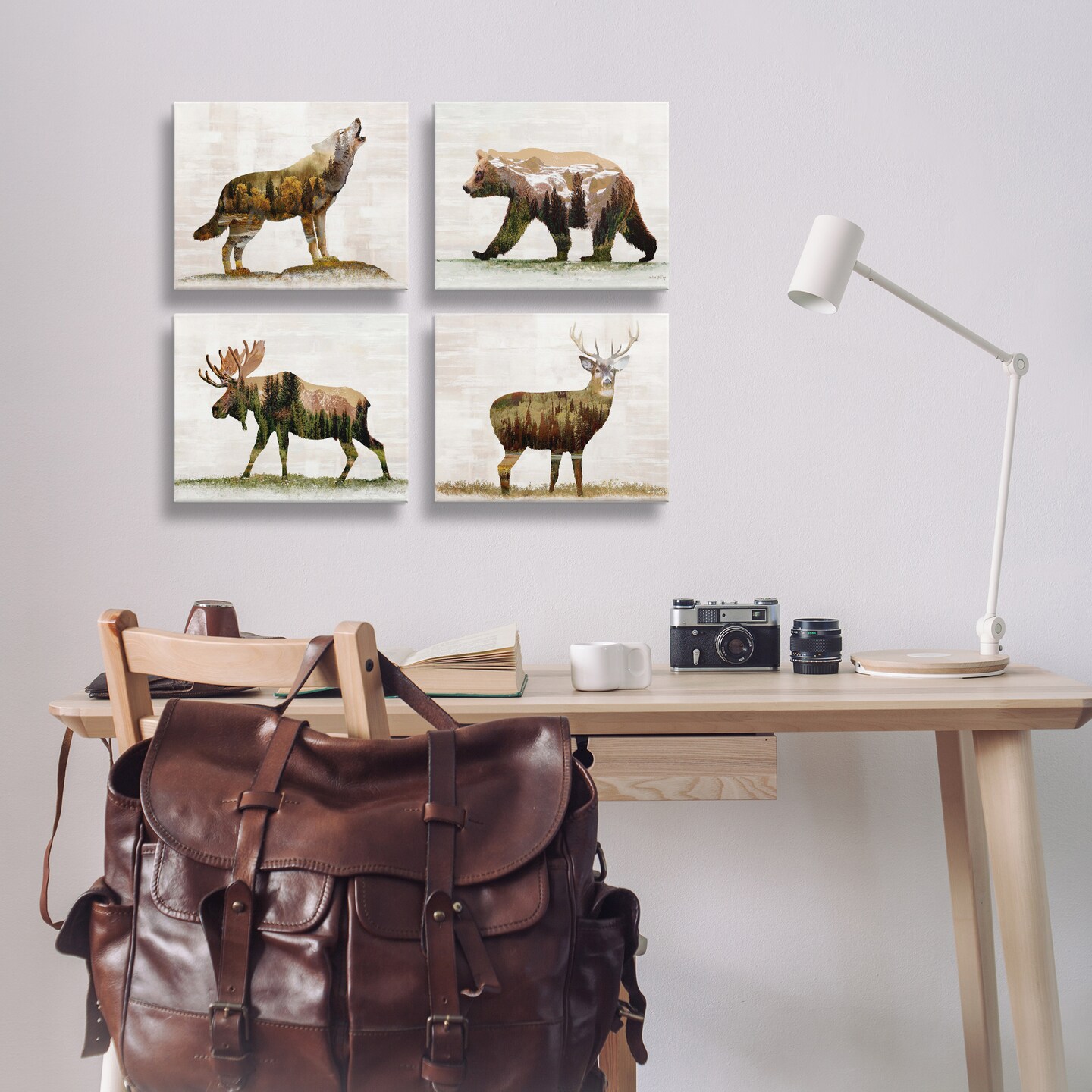 Stupell Industries Woodland Animals Rustic Pattern 4 pc Canvas Wall Art Set Design by Amber Sterling