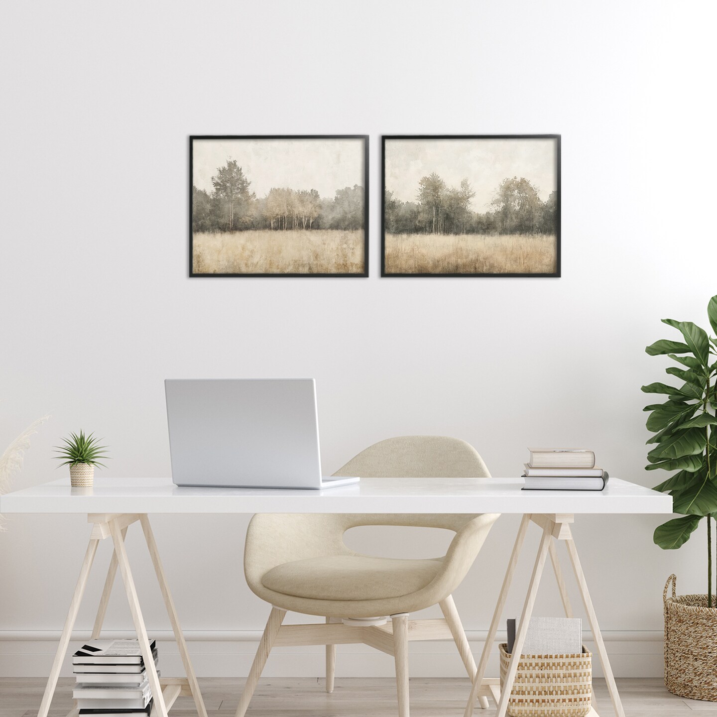Stupell Industries Woodland Watercolor Field 2pc Framed Giclee Set, design by Mona Grace