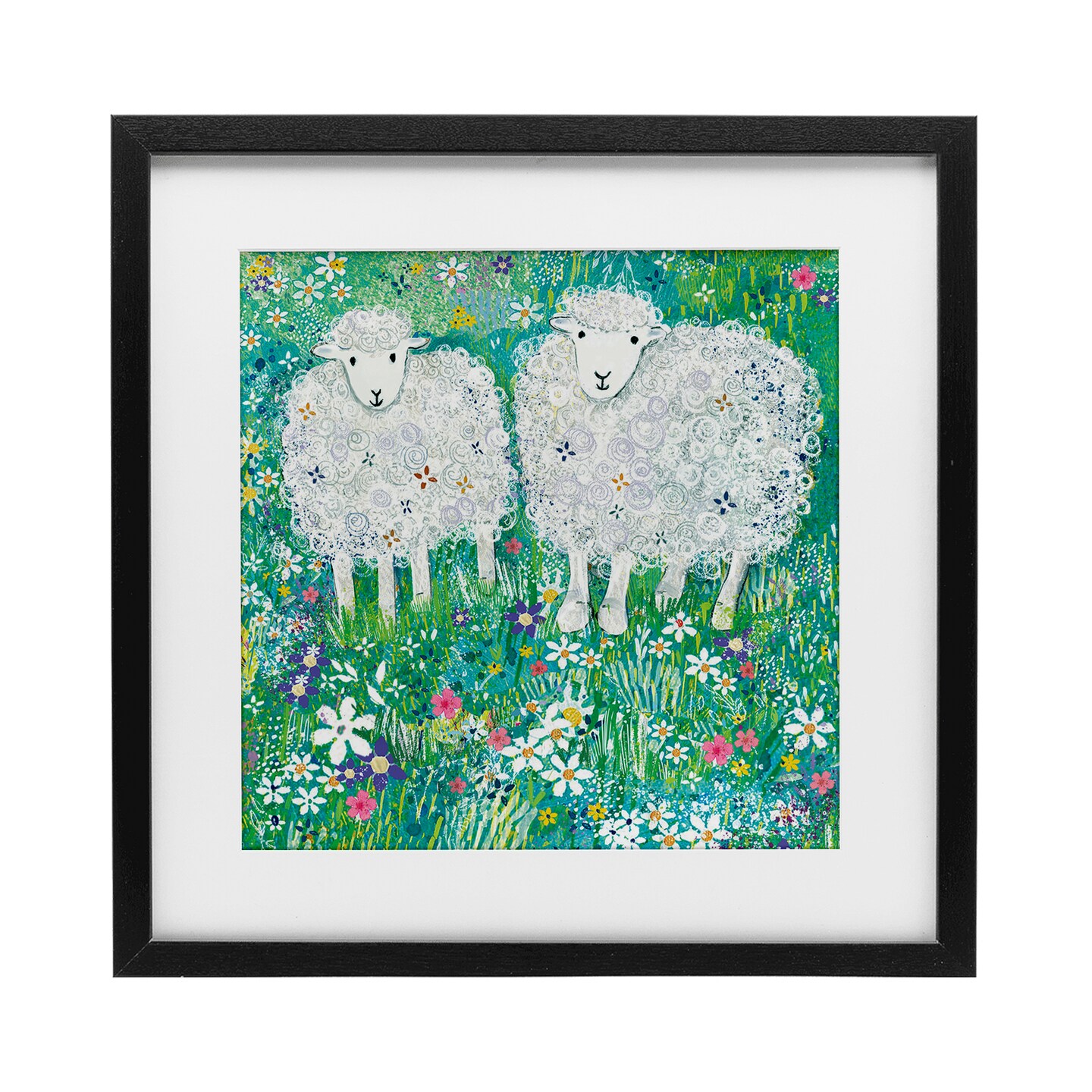 Stupell Industries Wooly Sheep with Scattered Flowers Framed Print Under Glass, design by Clare Tupper