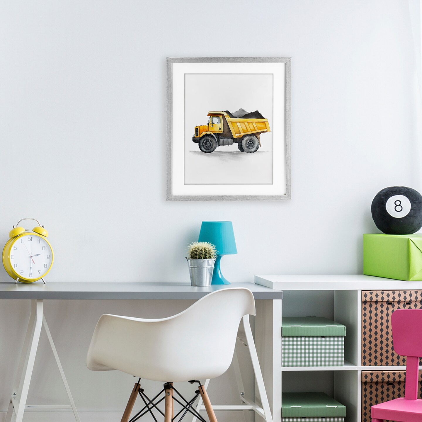 Stupell Industries Working Trucks Dump Vehicle Framed Print Under Glass, design by Christine Simpson Art