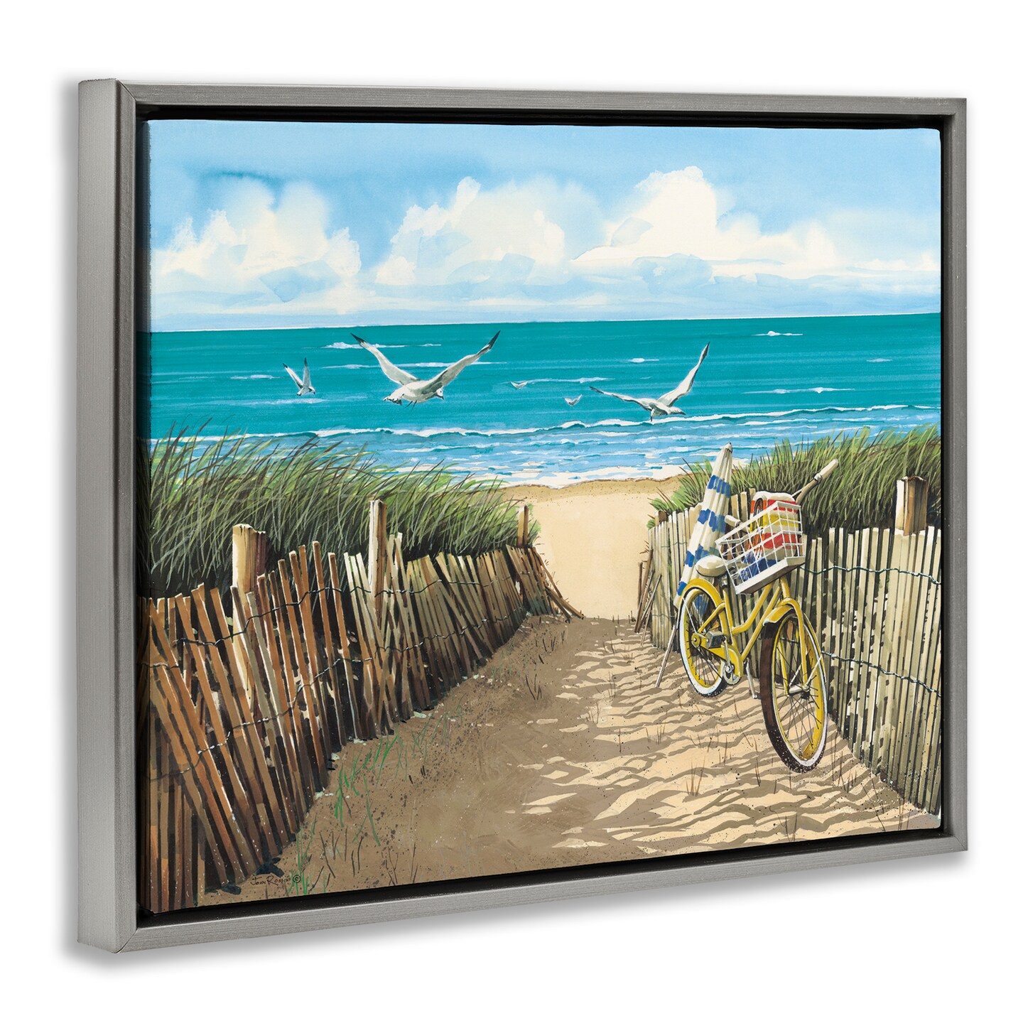 Stupell Industries Yellow Beach Taxi Coast Floating Frame, design by John Rossini