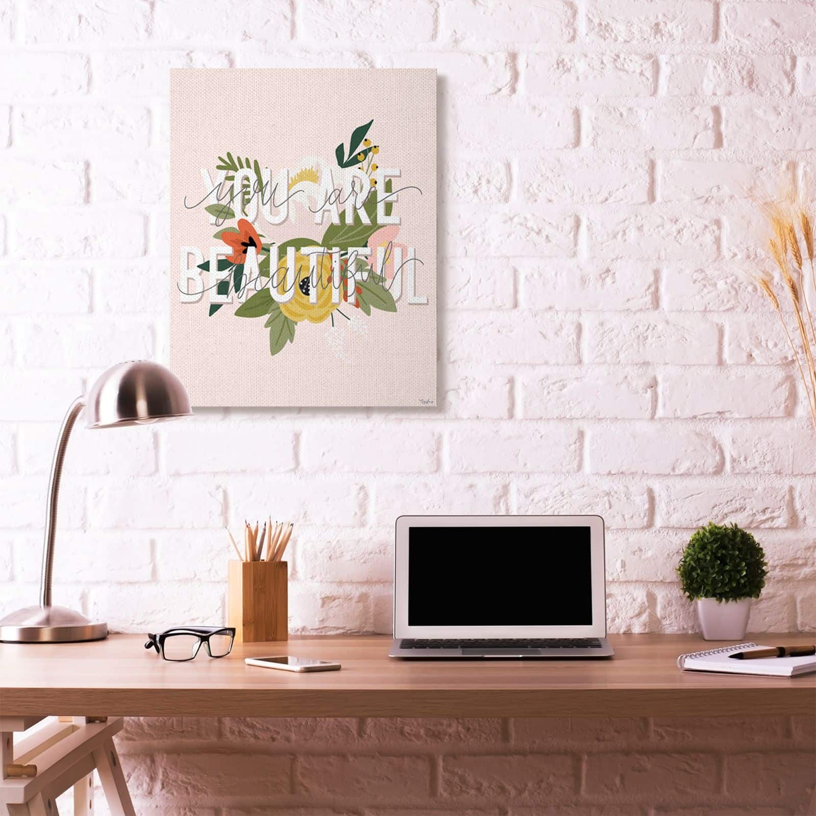 Stupell Industries You Are Beautiful Pink Flower Inspirational Word Design Canvas Wall Art