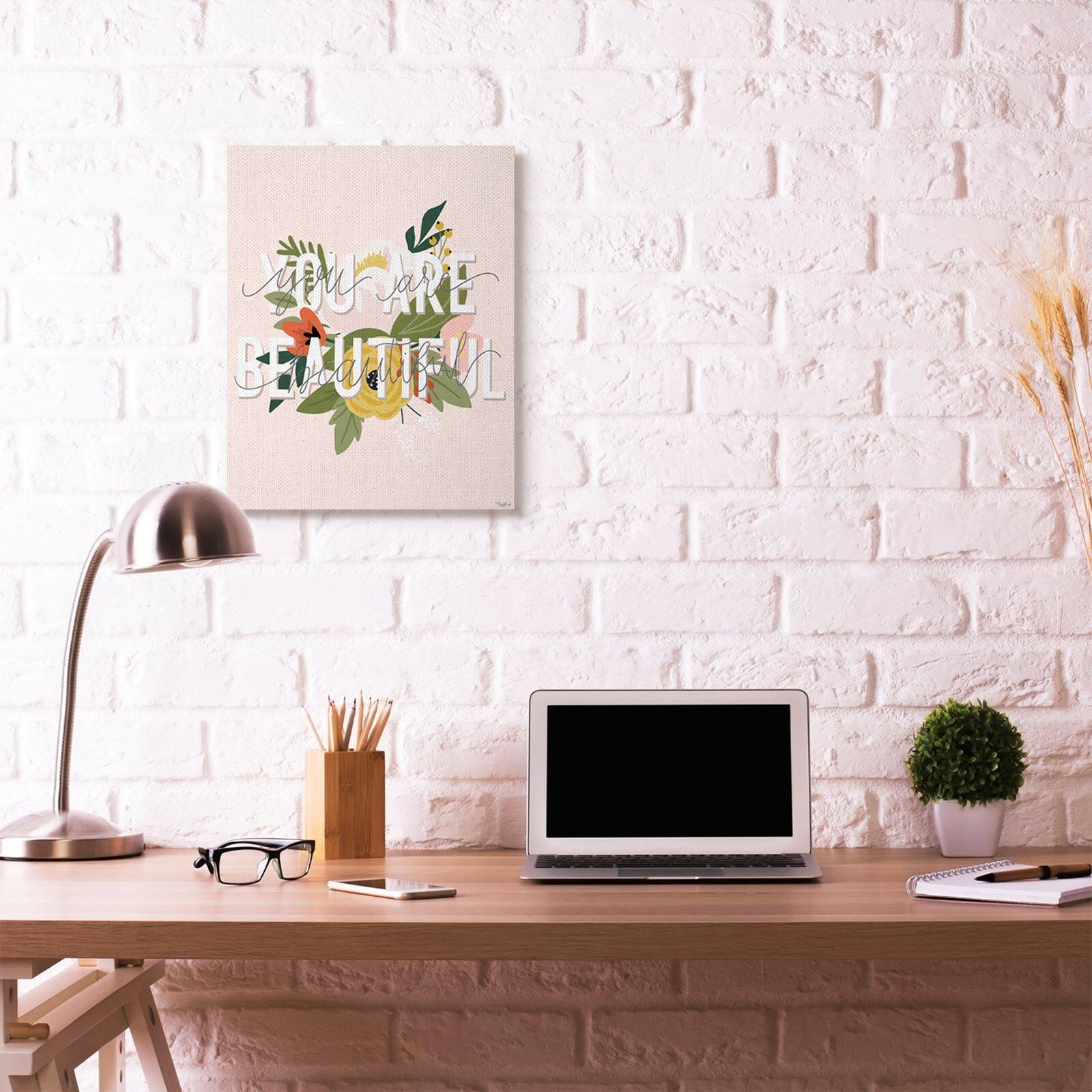 Stupell Industries You Are Beautiful Pink Flower Inspirational Word Design Canvas Wall Art