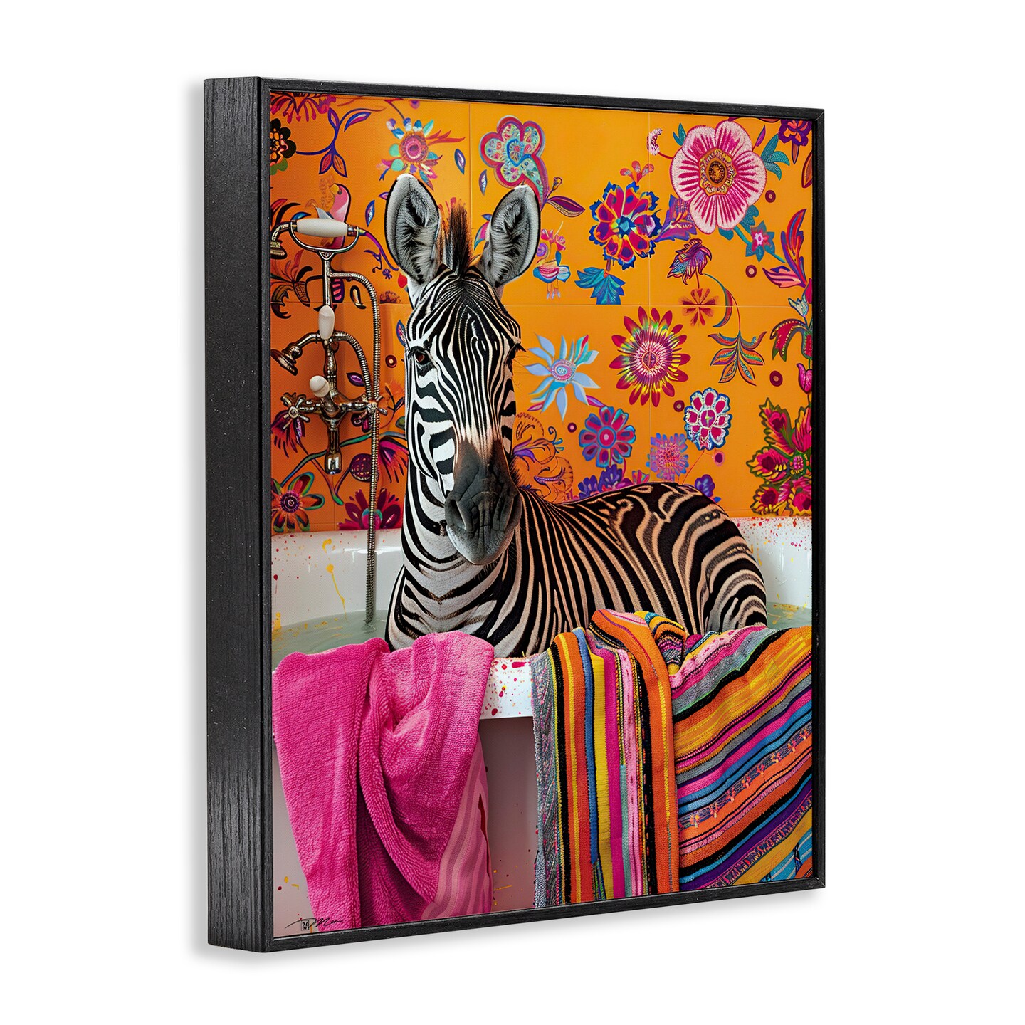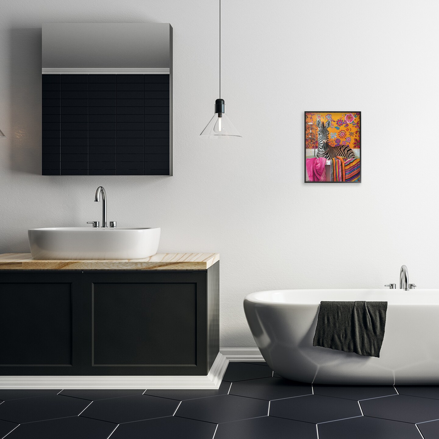 Stupell Industries Zebra Bath with Colorful Towel Framed Giclee, design by Momart