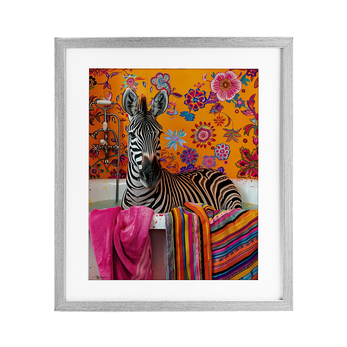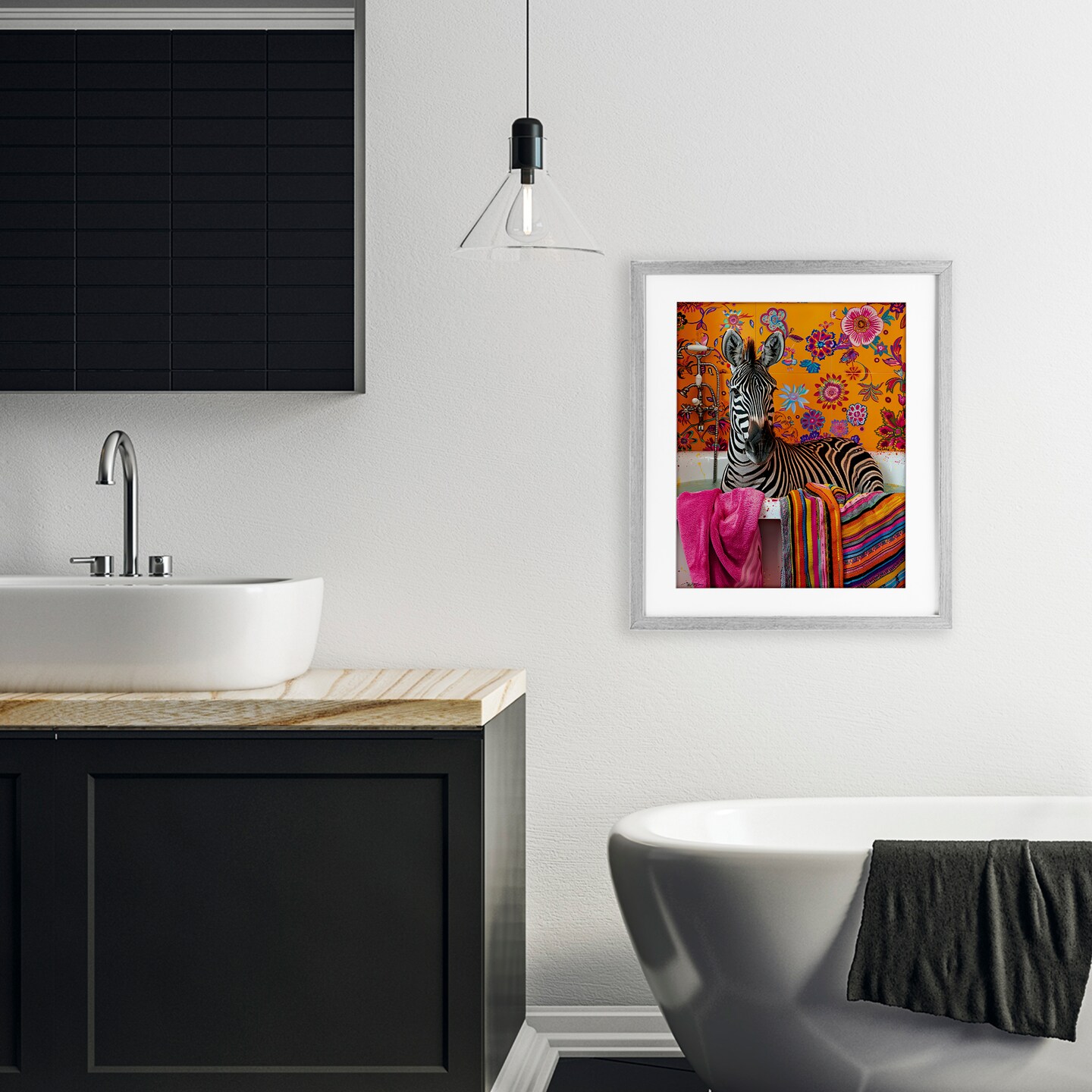 Stupell Industries Zebra Bath with Colorful Towel Framed Print Under Glass, design by Momart