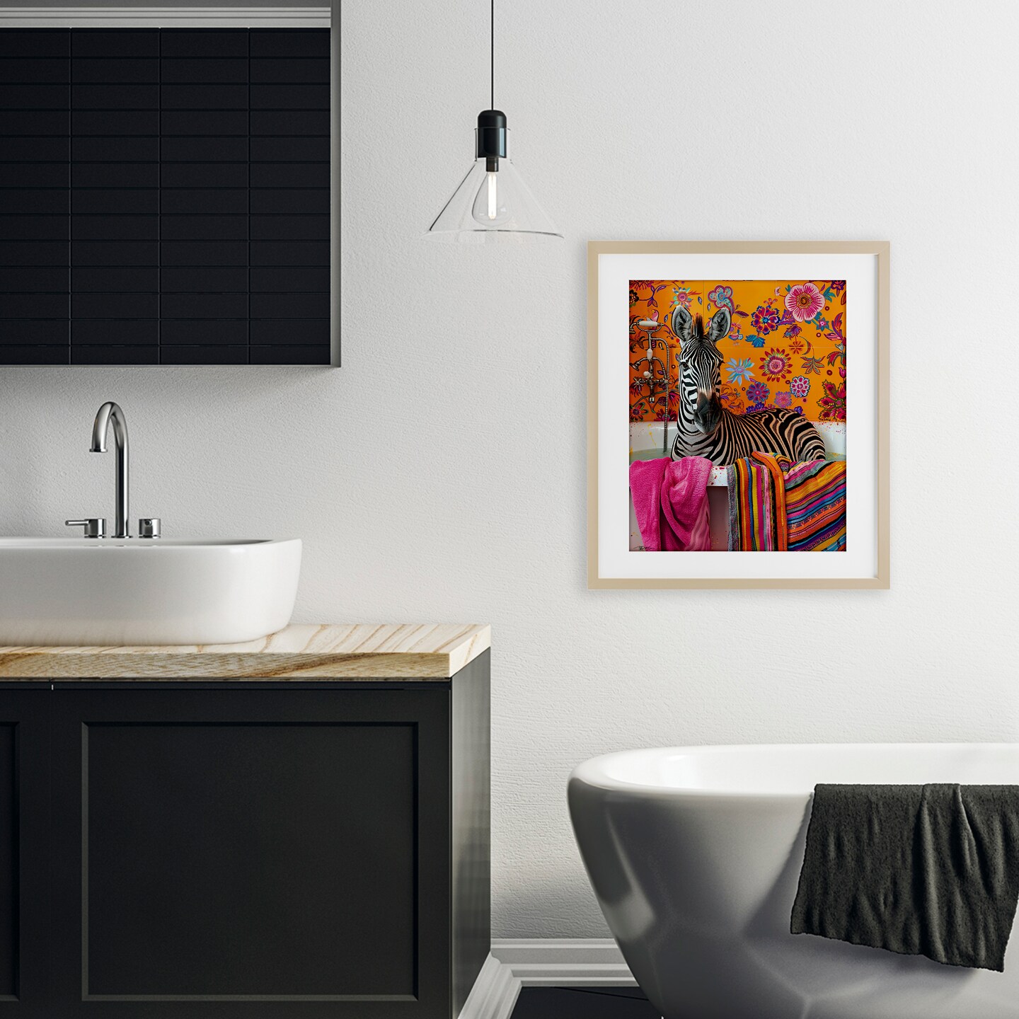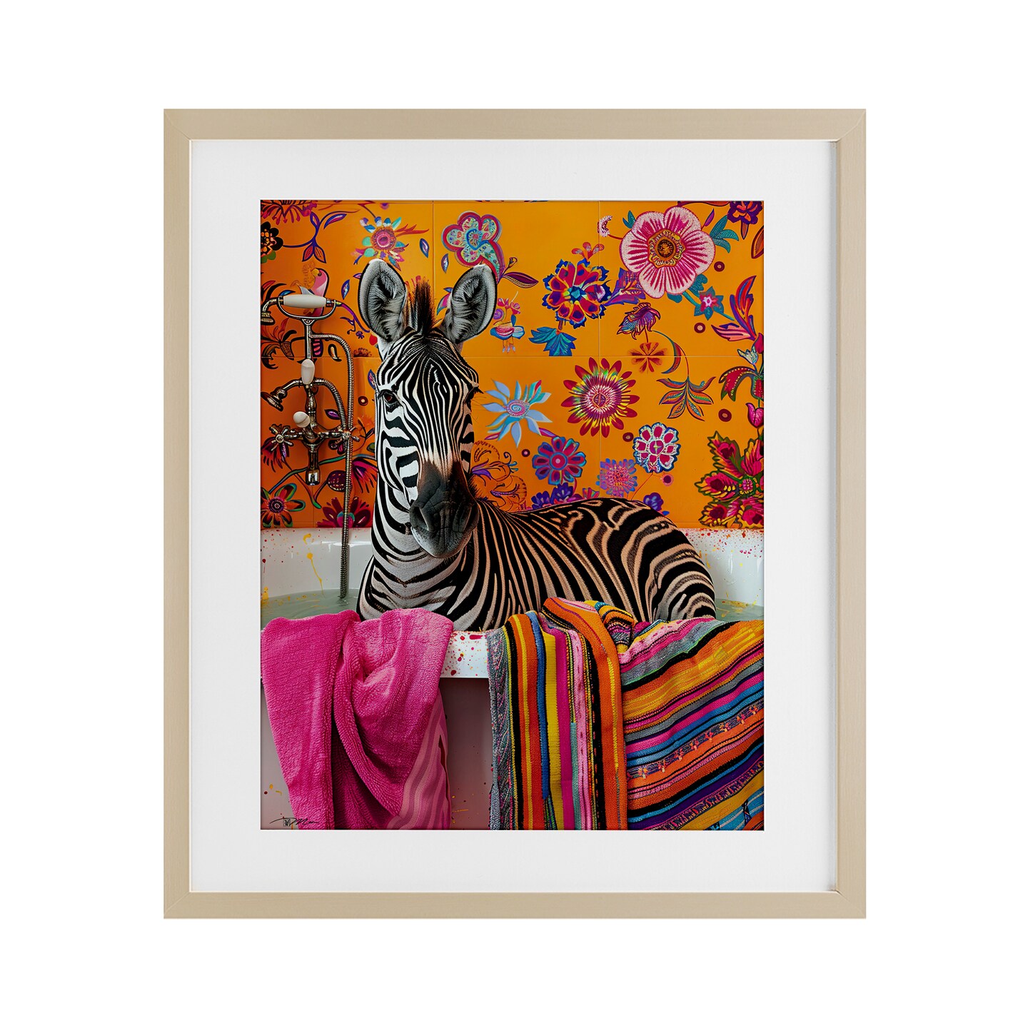 Stupell Industries Zebra Bath with Colorful Towel Framed Print Under Glass, design by Momart