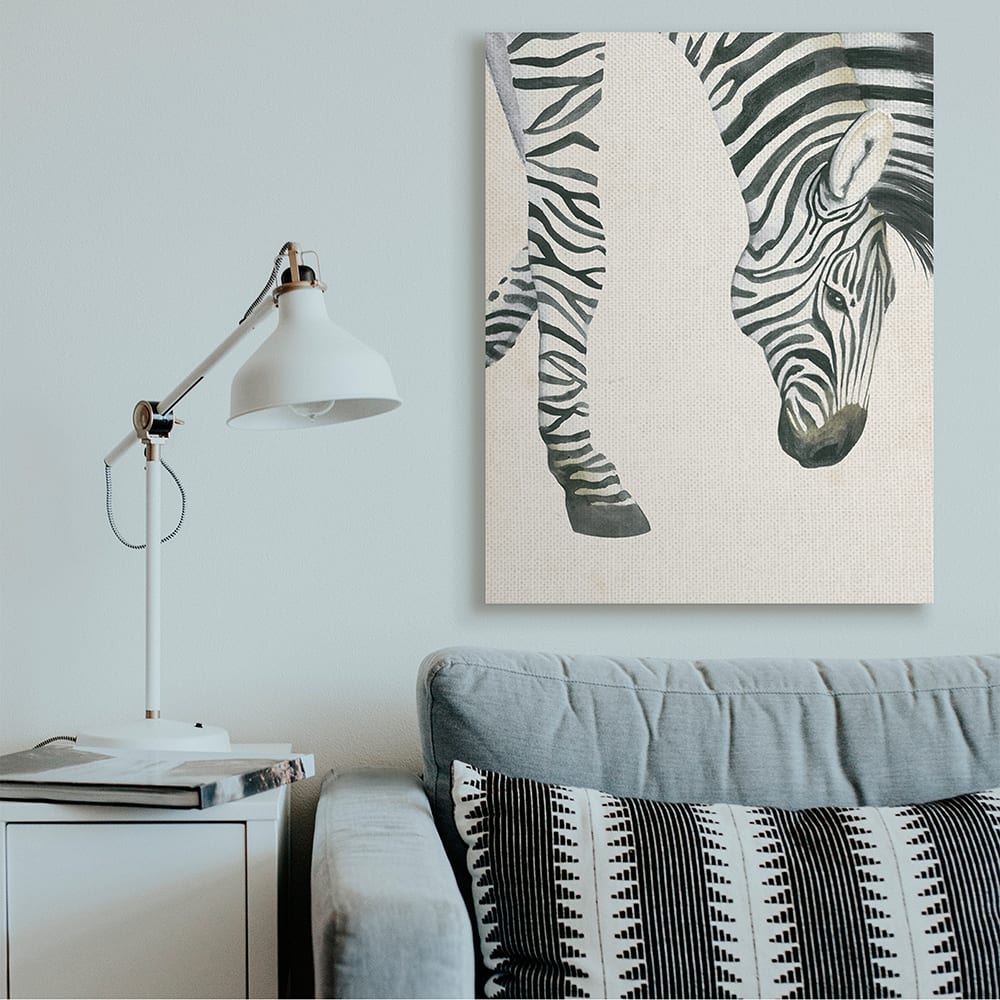 Stupell Industries Zebra Grazing Striped Safari Animal Hoof Detail Canvas Wall Art