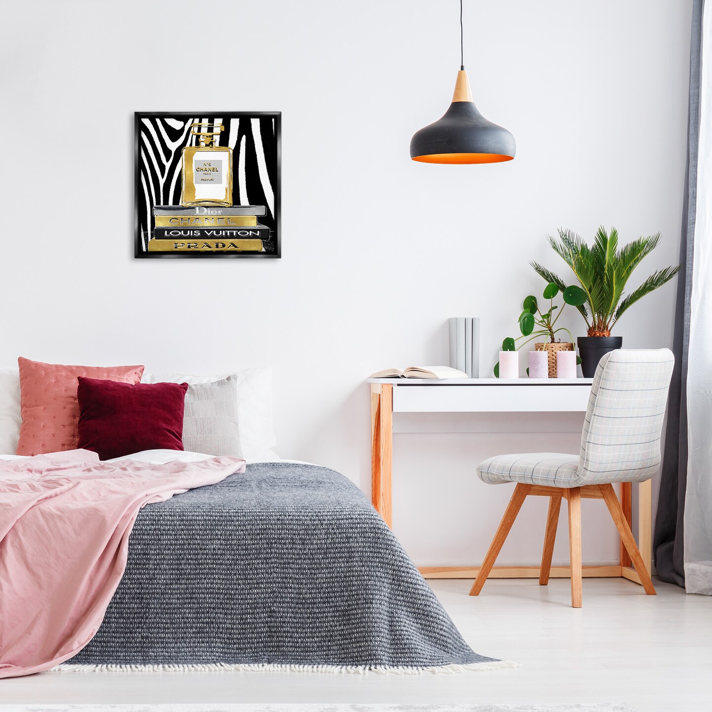 Stupell Industries Zebra Patterned Fashion Bookstack Framed Floater Canvas Wall Art