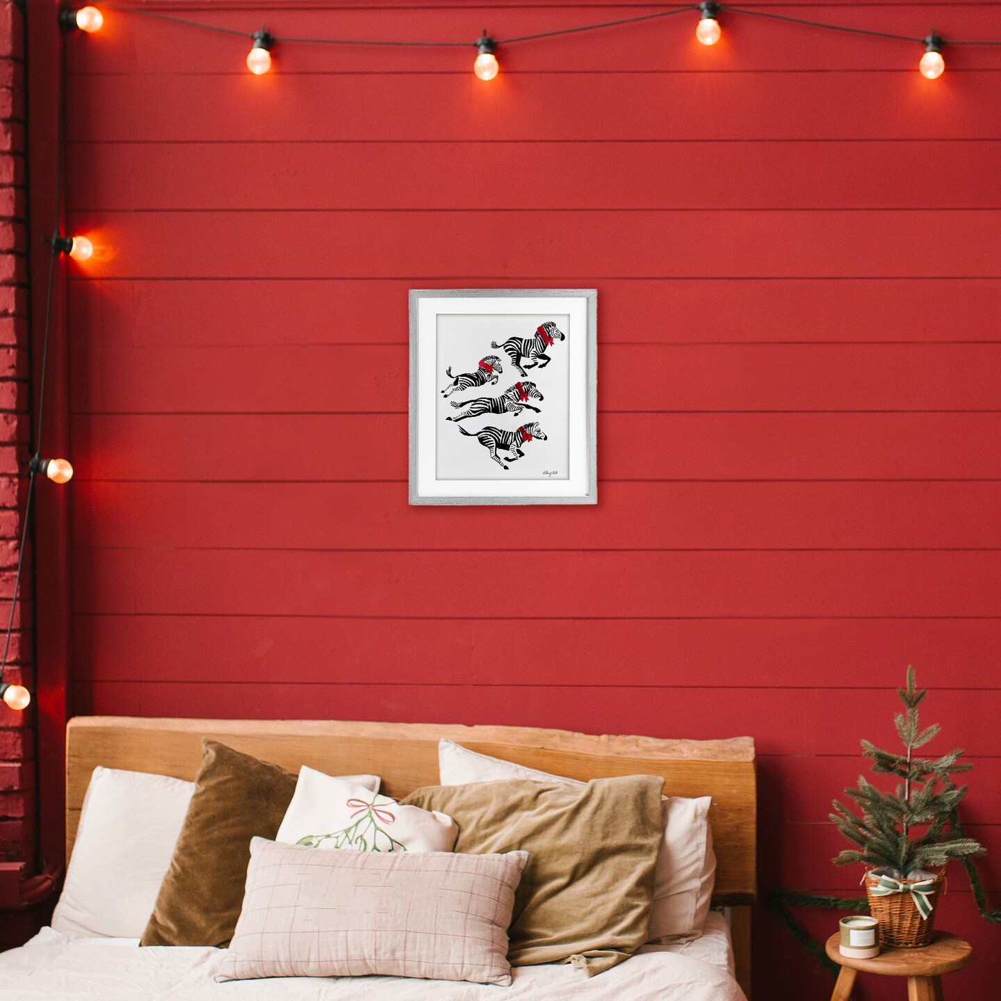 Stupell Industries Zebra Stampede with Ribbons Framed Print Under Glass, design by Hillary Holt