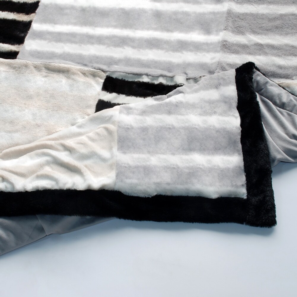 Stylish Classic Stripe Patchwork Throw Blanket, 61" x 86.6", Soft Micro Fleece & Plush for Bedroom