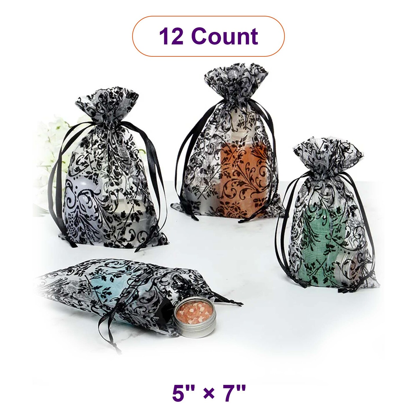Stylish Damask Print Sheer Bags 5" x 7"