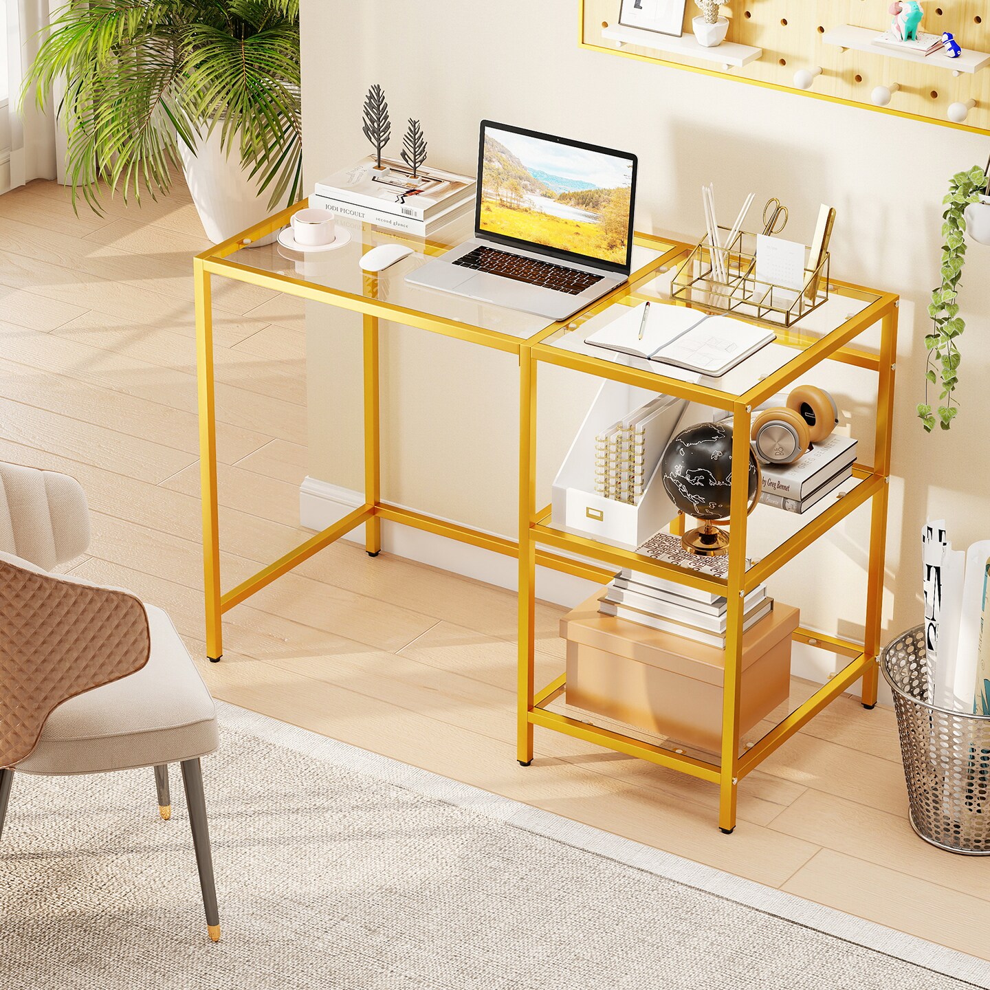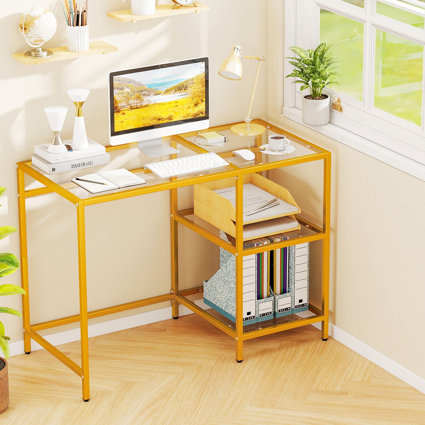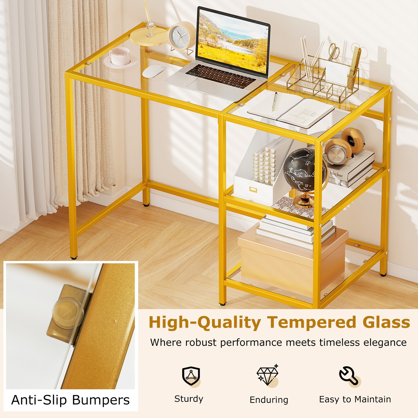 Stylish Modern Console Table with 2 Open Shelves and Metal Base