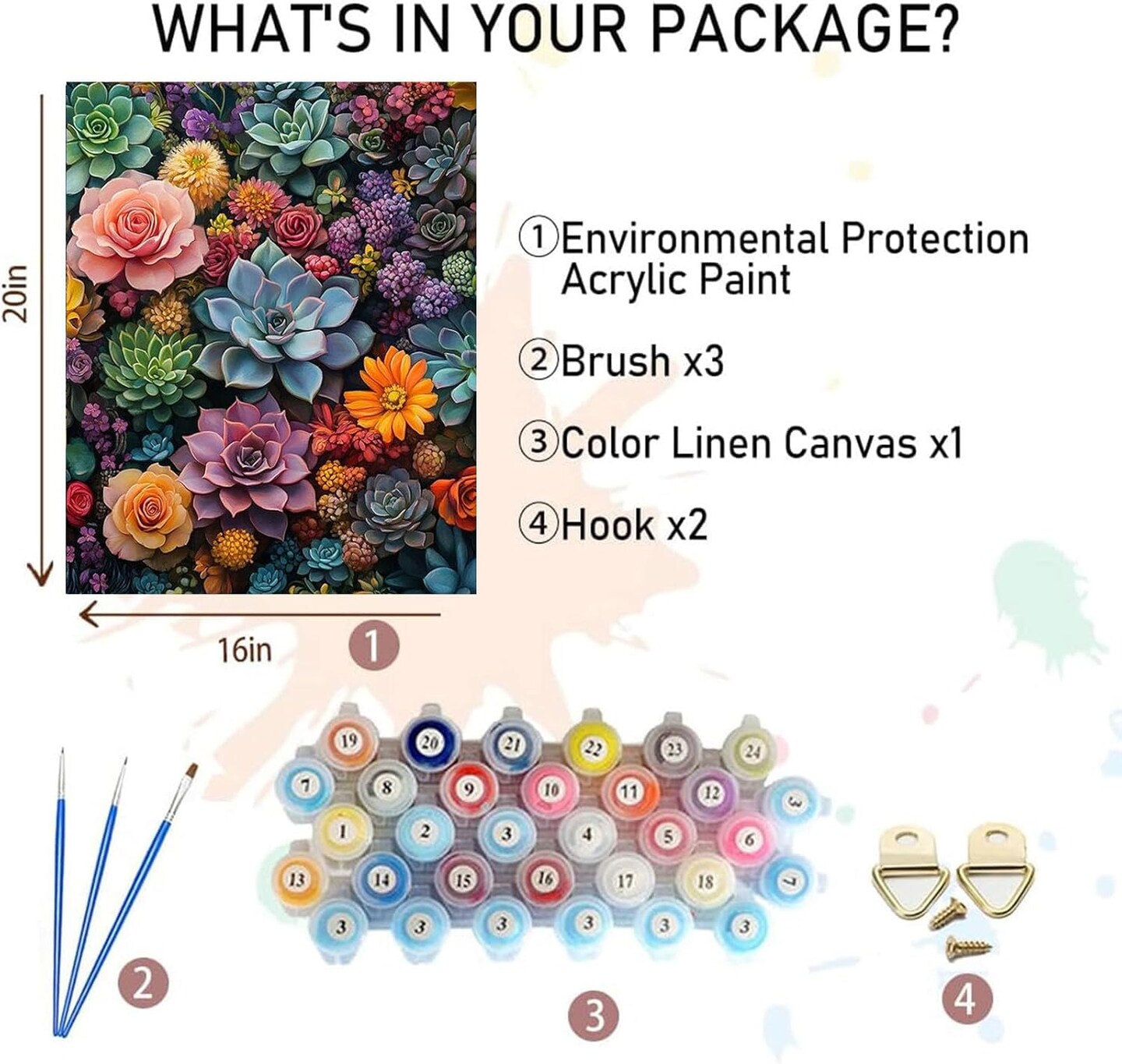 Succulent Paint by Numbers for Adults-Paint by Number Succulents on Canvas Without Frame,DIY Plant Oil Painting for Gift Home Wall Decor(16x20inch)
