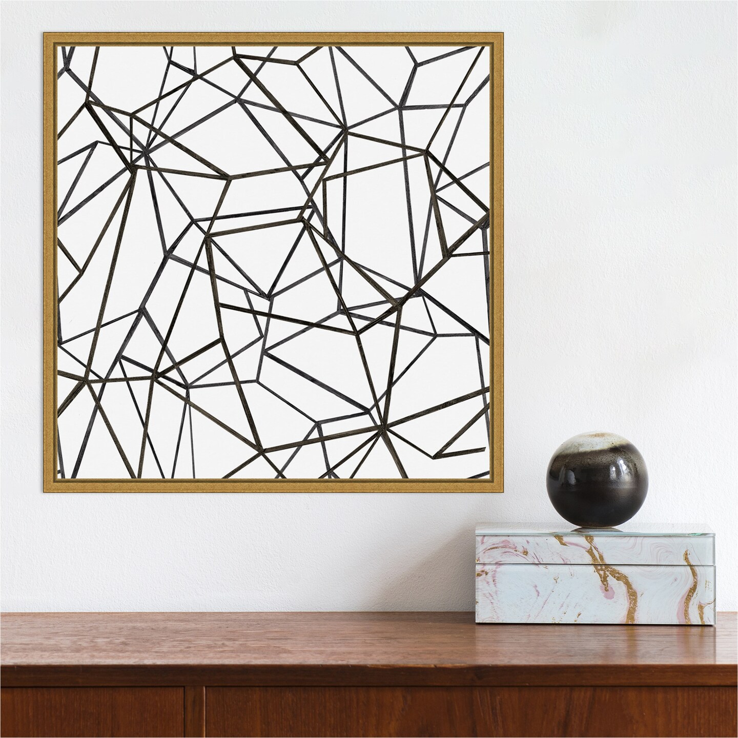 Succulent Pattern BW by Wild Apple Portfolio 16-in. W x 16-in. H. Canvas Wall Art Print Framed in Gold