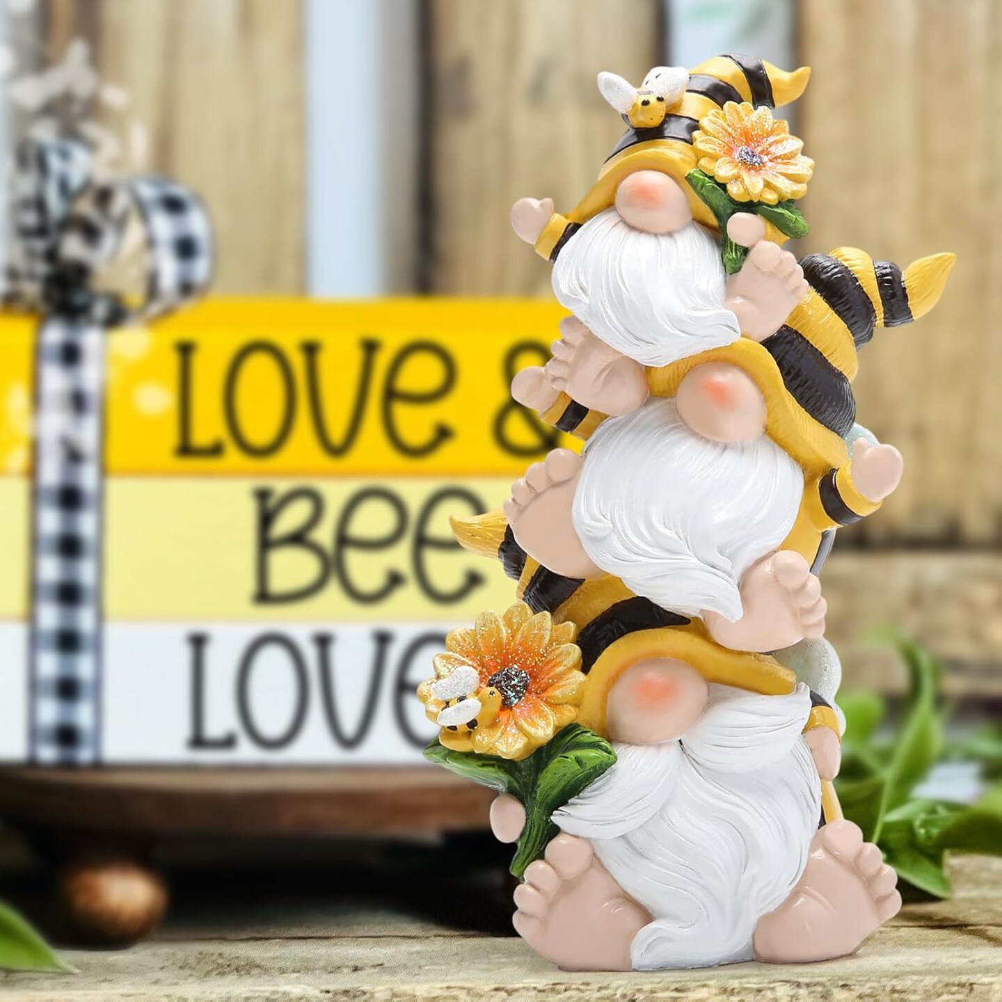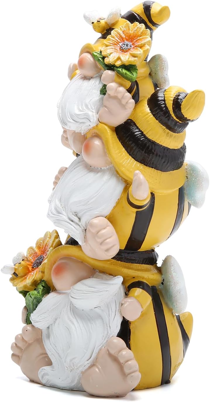 Summer Bee Gnome Decorations Indoor Home Table Decor Cute Stacked Bee Gnome Figurines Gifts -Swedish Dwarf Elf Figurines Summer Garden Honey Bees Gnomes Decorations