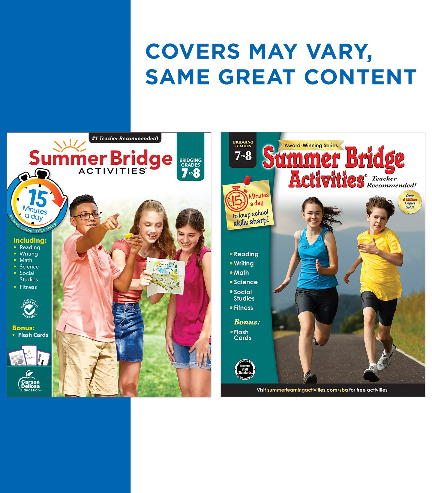 Summer Bridge Activities 7th to 8th Grade Workbooks All Subjects, Middle School Books With Math, Reading Comprehension, Science, Fitness, Social Studies, Writing Practice, and Flash Cards