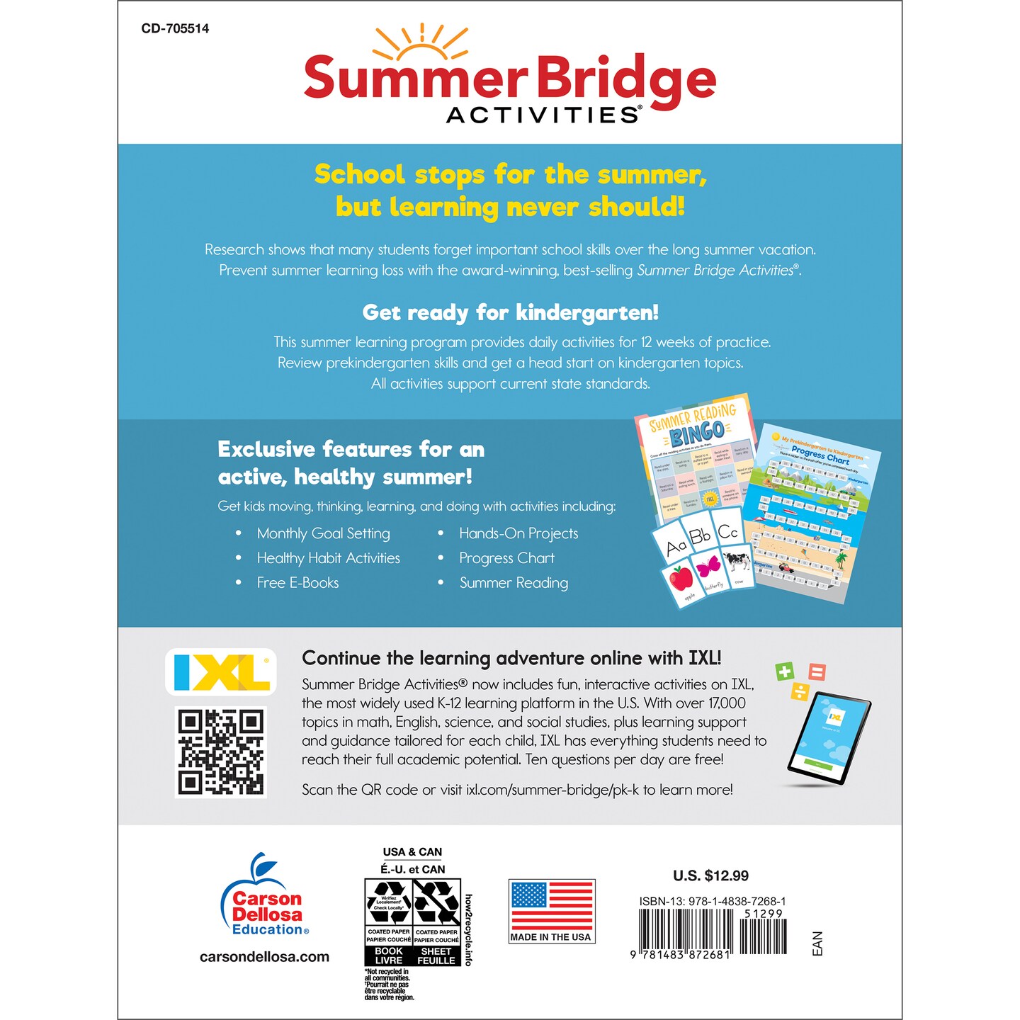 Summer Bridge Activities Preschool to Kindergarten Workbook, Activity Book Ages 4-6 With Math, Phonics, Handwriting Practice, Fitness, Flash Cards, Stickers, and More