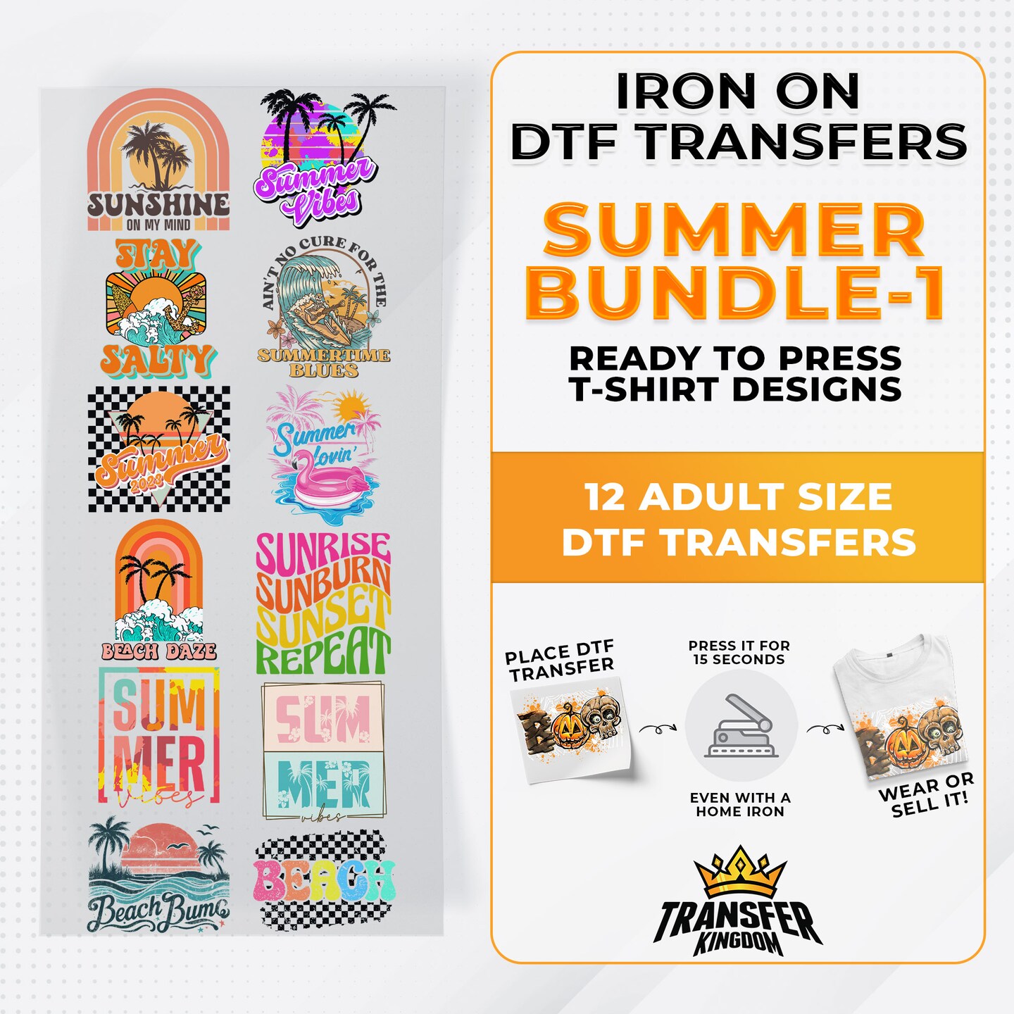 Summer Bundle Iron on DTF Transfer Bundle 1 - 12 Best Seller Ready To Press T-shirt Designs