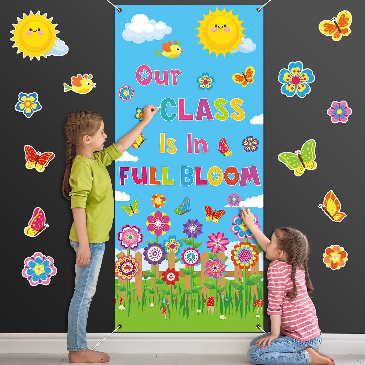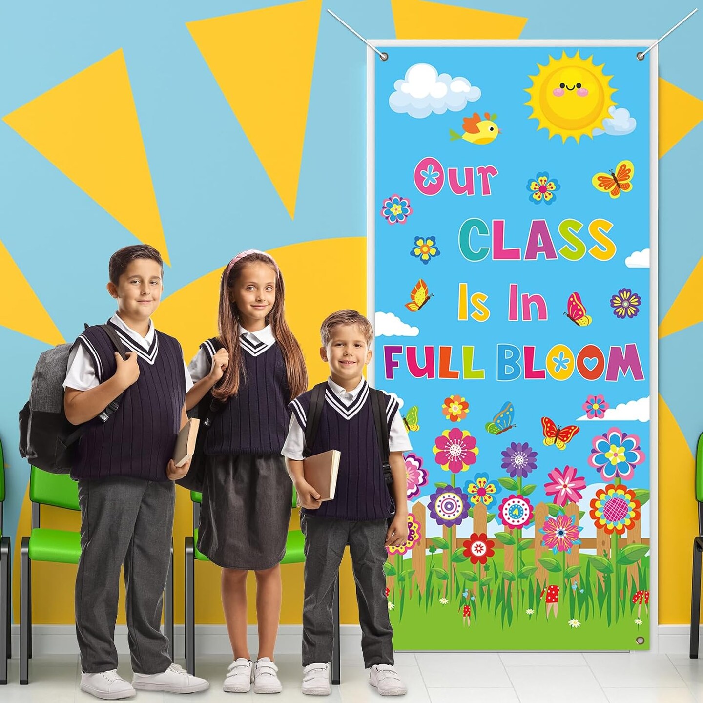 Summer Classroom Door Cover Decoration Our Class Is In Full Bloom Summer Door Banner Large Flower Porch Backdrop Sign for School Easter Door Indoor Outdoor Wall Window Decor