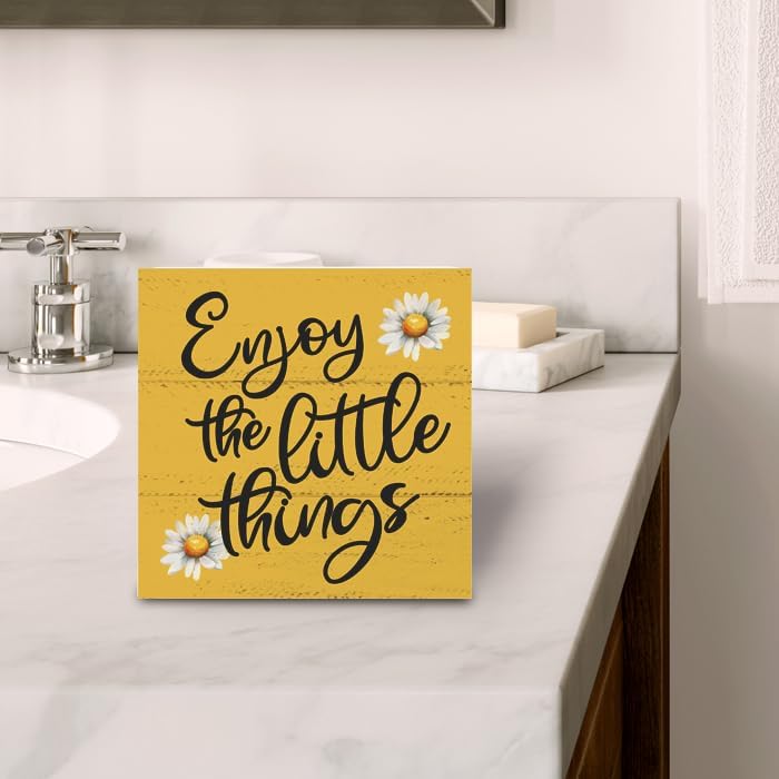 Summer Daisies Wooden Box Sign For Tabletop Decor, Bathroom Shelf Decoration, Farmhouse Living Room Bedroom Wall Decor, Enjoy The Little Things Sign