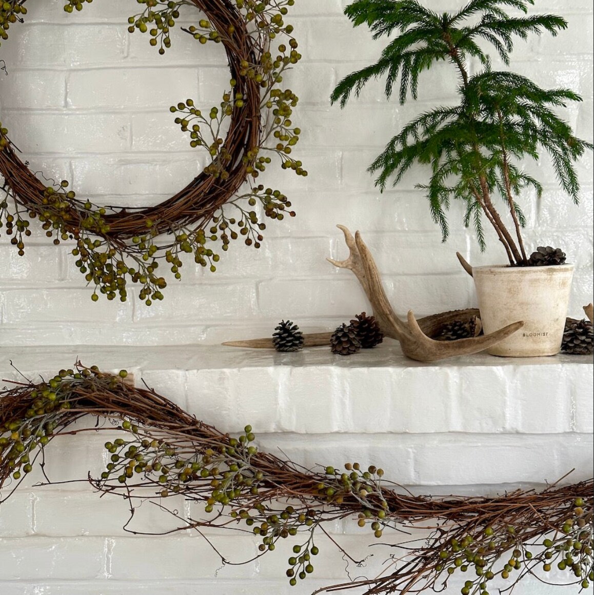 Summer EcoFaux Green Ilex Berry Garland, 6' artificial natural decoration by Bloomist