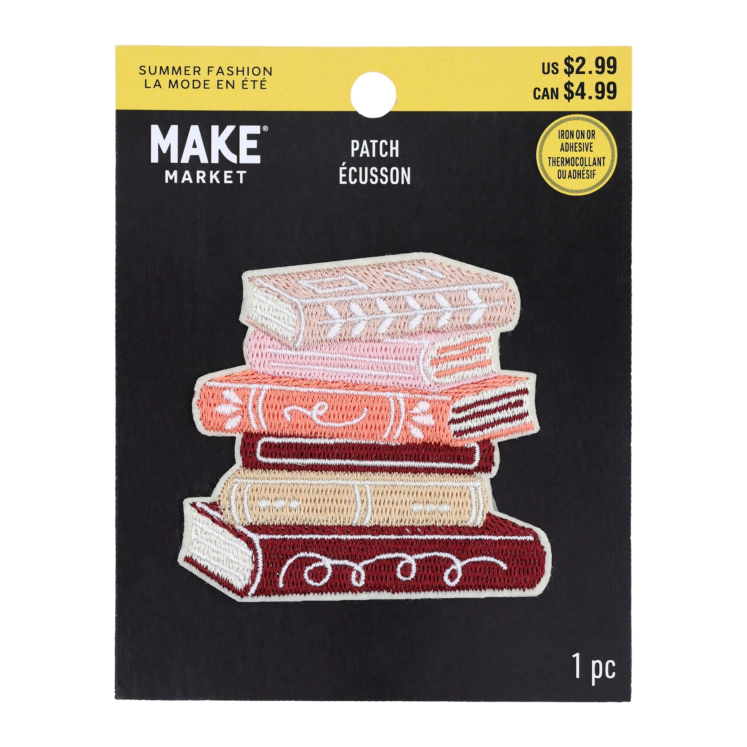 Summer Fashion Stack of Books Iron-On & Adhesive Embroidered Patch by Make Market®