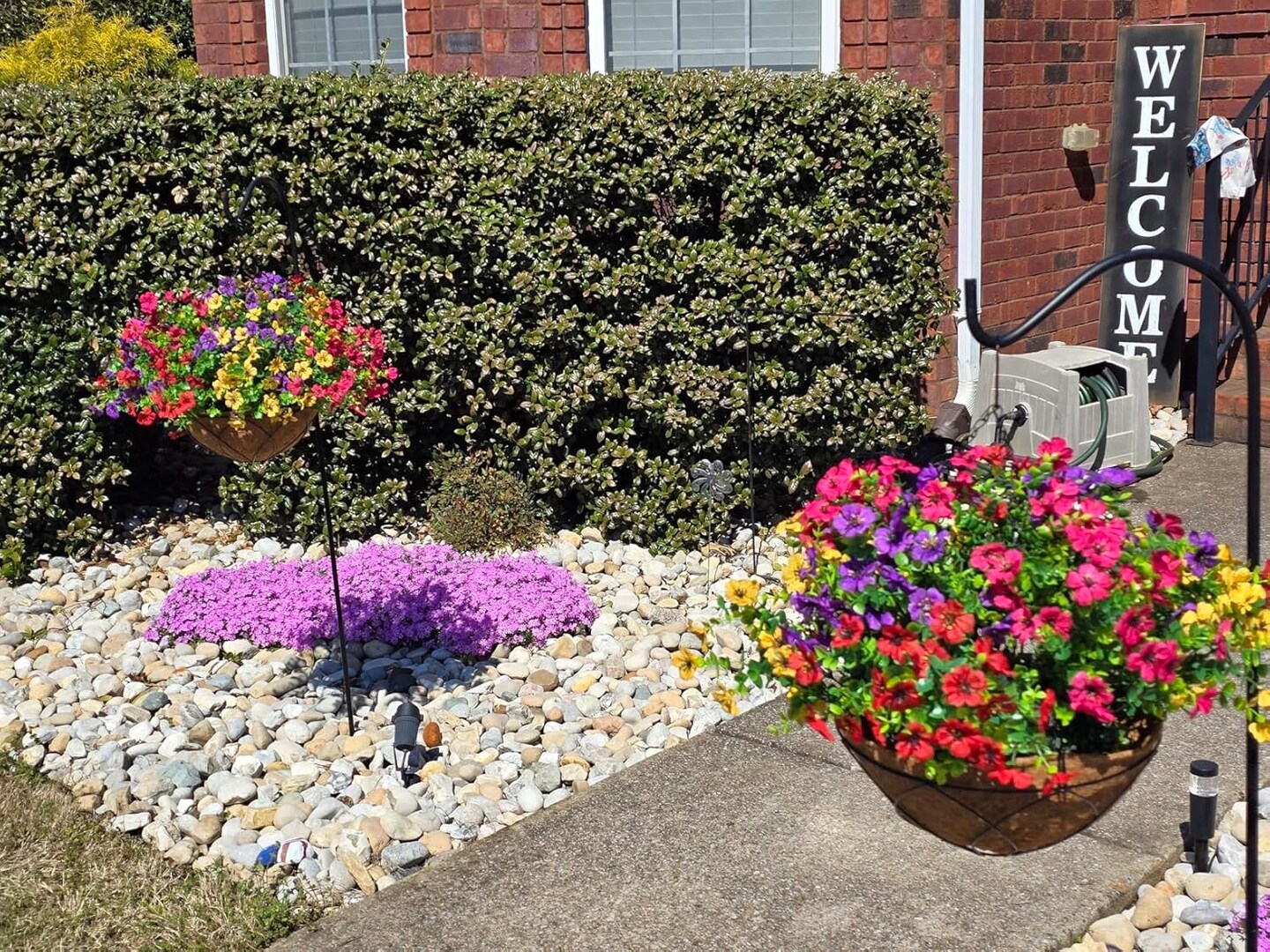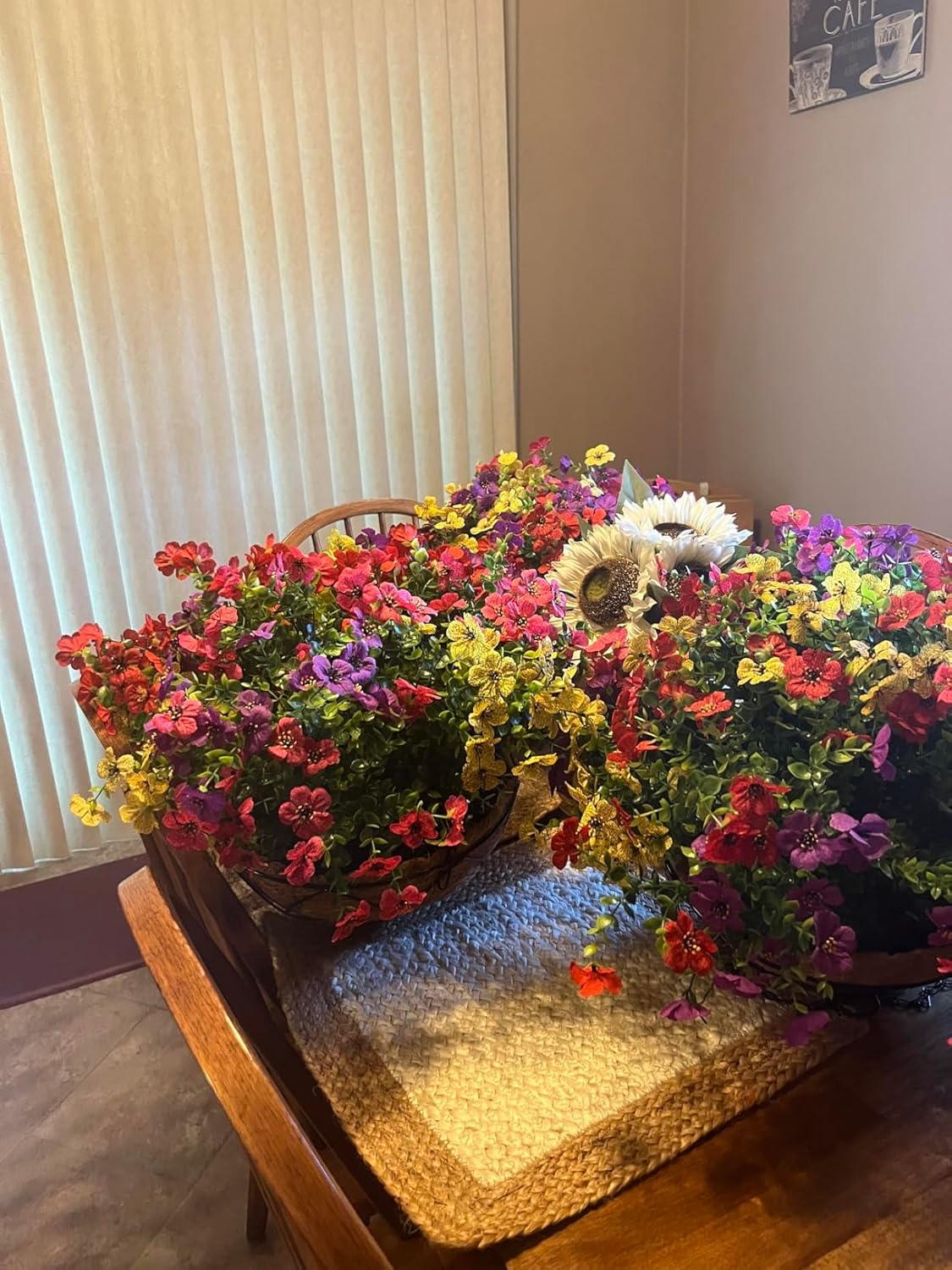 Summer Floral Arrangement – Artificial Faux Hanging Plants with Daisy Flowers and Eucalyptus Basket, UV Resistant for Outdoor Porch Decoration